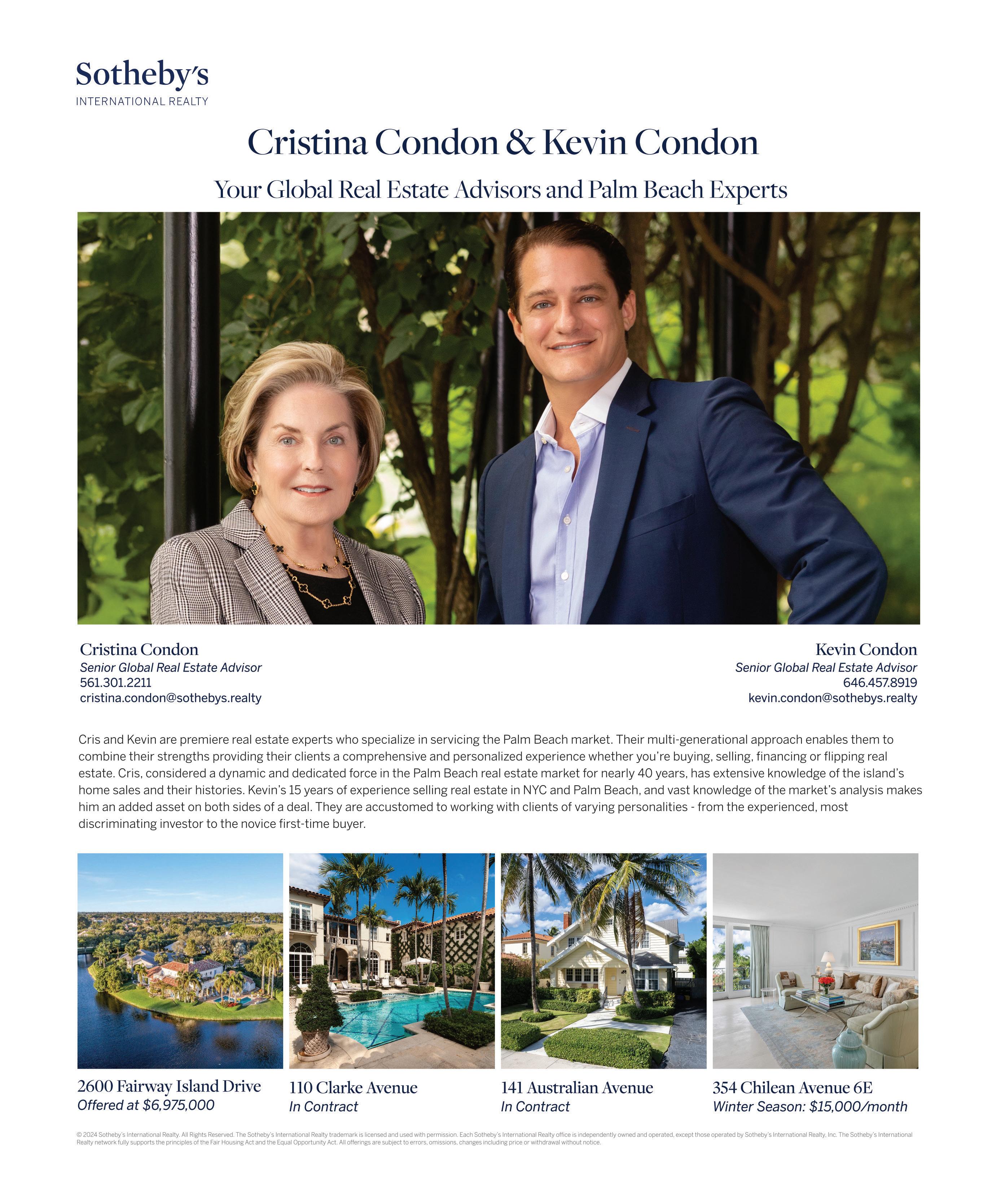 As Chair of the Palm Beach Chamber of Commerce, I’m proud to champion the businesses and leaders who make this community extraordinary. Whether you’re visiting, investing, or choosing to call Palm Beach home, we invite you to discover the beauty, opportunity, and unmatched charm that define this island.