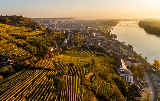 Krems. Das Tor zur Wachau. Sehnsuchtsort nicht nur von Fahrradtouristen aus aller Welt, sondern auch beliebtes Ausflugsziel für Passauer. Die Verbindungen zu Krems, das etwa halb so groß ist wie Passau und etwa 200 Kilometer donauabwärts liegt, sind seit Jahrhunderten gewachsen – im wahrsten Sinne des Wortes: Bereits seit 1358 besitzt die Bürgerliche Heiliggeist-Stiftung Passau Ländereien in Krems, die seit 1963 ununterbrochen an das Weingut Salomon Undhof verpachtet sind. An den Hängen über Krems werden vor allem Grüner Veltliner und Riesling angebaut: Weine, die seit vielen Jahrzehnten nicht nur die Passauer Bürger erfreuen, sondern auch dem Stiftungszweck dienen: dem Betrieb des Seniorenheims der Bürgerlichen Heiliggeist-Stiftung.