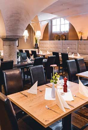Im romantischen Gewölberestaurant von 1864 genießen Sie regionale und internationale Spezialitäten und dazu einen edlen Tropfen aus dem alten Weinkeller.