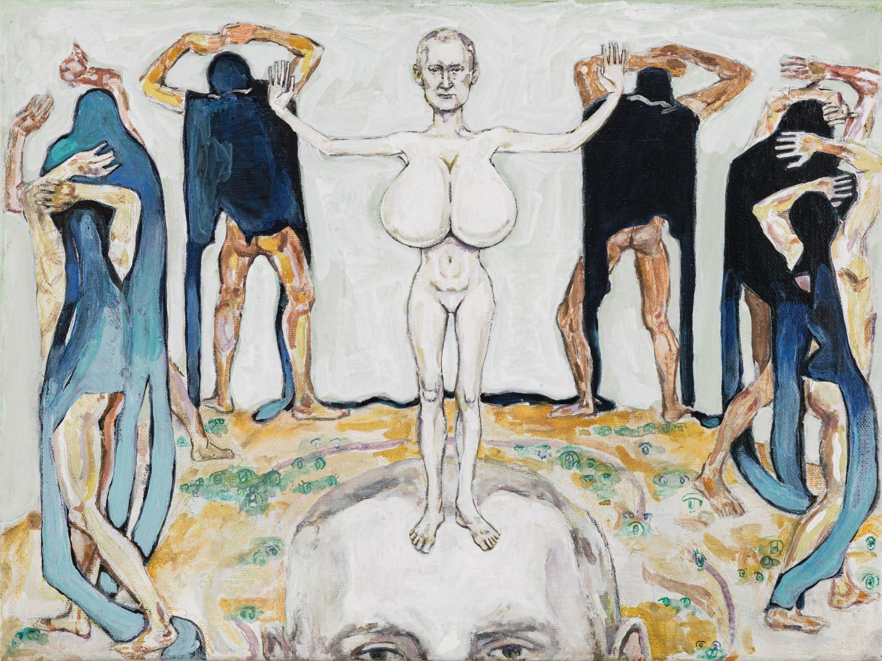 2022. 30 x 40 in. Acrylic and oil stick on canvas.