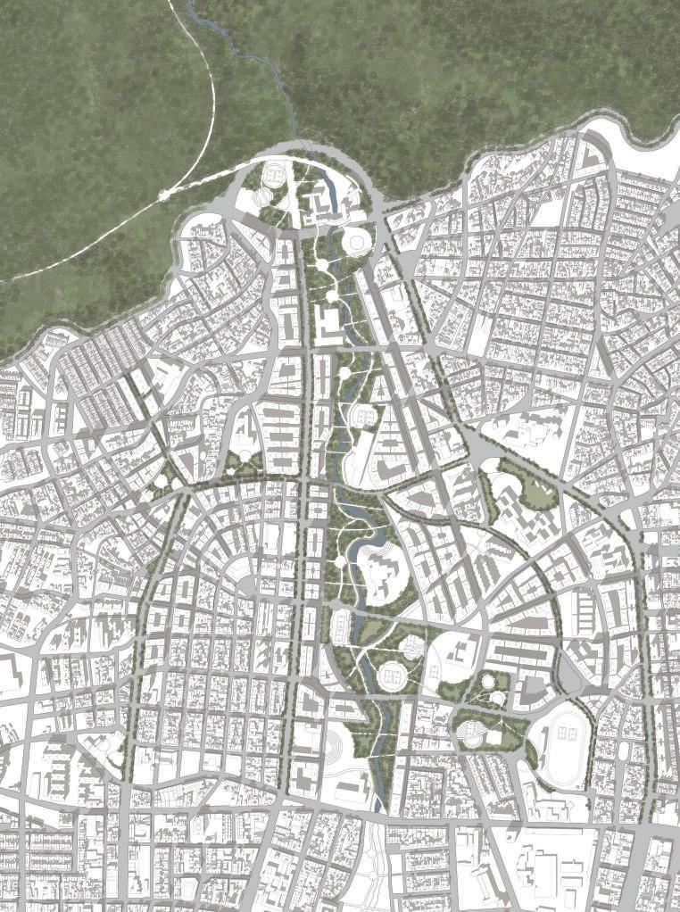 Esquemas síntesis del proyecto urbano: natural, movilidad y centralidades.