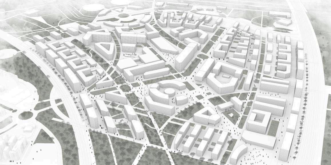 Los paseos peatonales que unen el Río Manzanares y los equipamientos de mayor jerarquía con el cinturón verde de la M-45 atraviesan el recinto urbano a la mitad, de manera que los flujos peatonales generados por los usos dotacionales atraviesan el proyecto.
