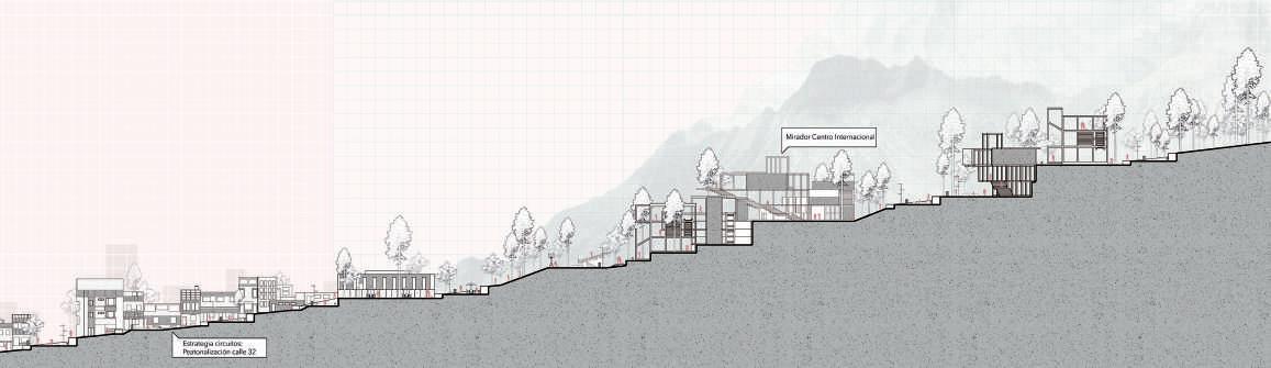 El proyecto del mirador Cerros del Oriente, surge a partir de la estrategia de circuitos y la subestrategia de articulación. Esto, a partir del reconocimiento de la Av. Circunvalar como un eje frontera entre los cerros orientales y el barrio de La Perseverancia. El dispositivo surge como soporte urbano de las dinámicas socio-urbanas.
