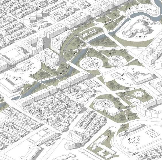 Propuesta urbana que mejora las condiciones del río Fucha como eje estructurante del sistema de equipamientos.