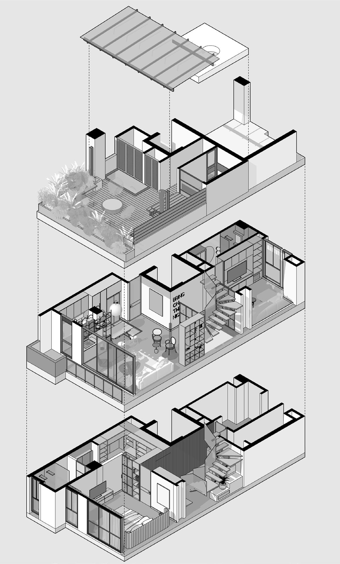 Axonometría Casa Comuna