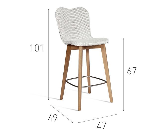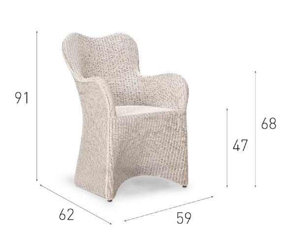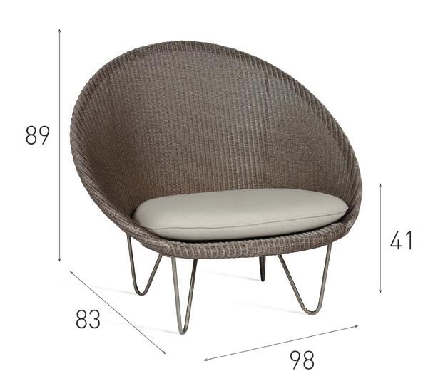 For indoor products in Lloyd Loom weave with a rattan frame, feet are standard in brass, except for the colours Nacré, Oyster and Sparkle, for which they are in chrome. If requested differently, please specify on the order (free of charge)
