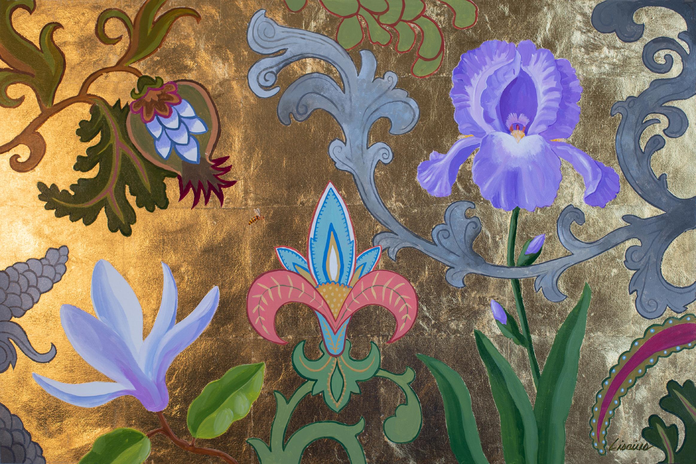 Ensemble, Acrylic and gold leaf on panel, 20 x 30 inches, $2,900.00