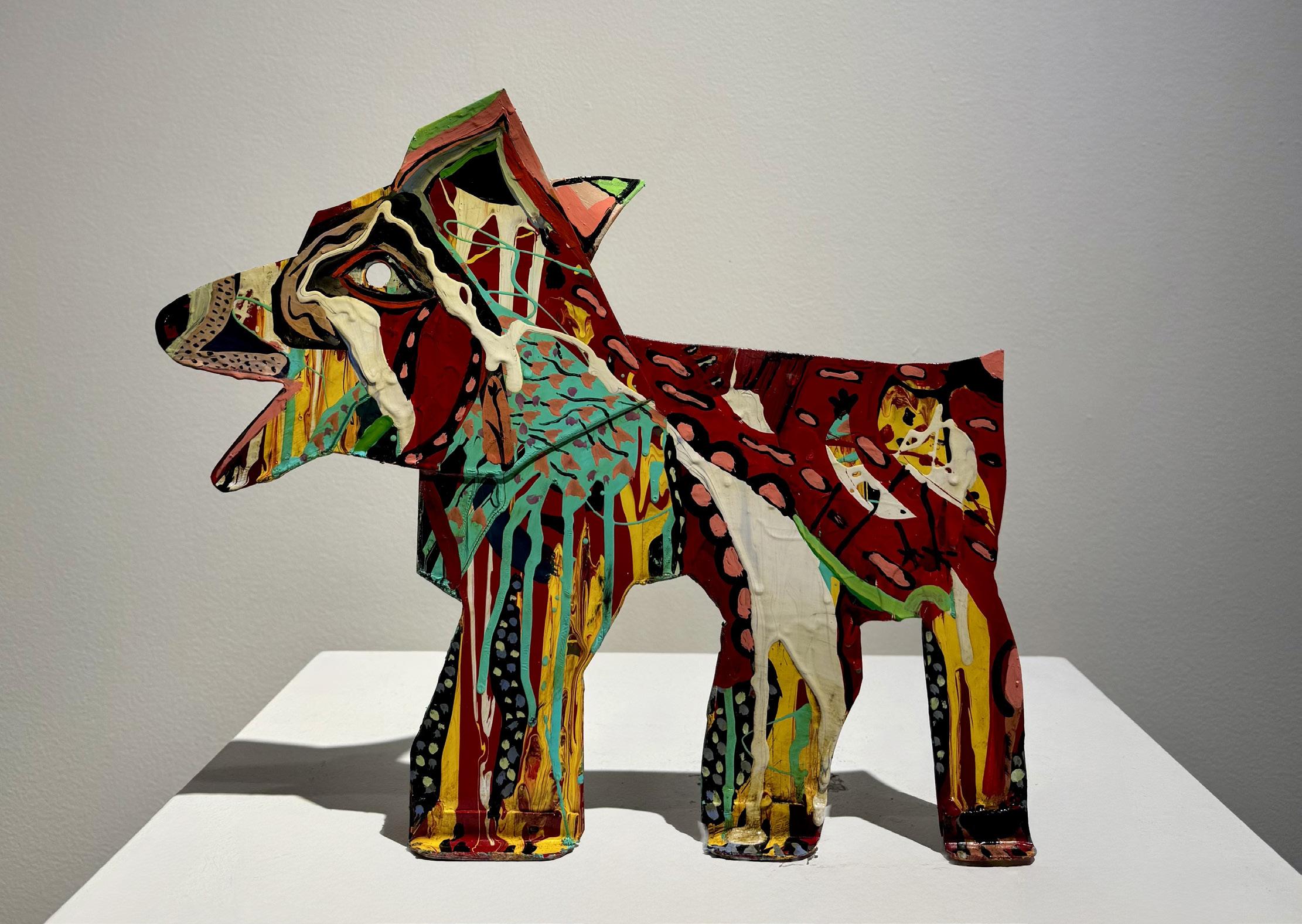 “Metal Dog,” oil & enamel on steel, 13.5 x 16 x 3 inches, $2,500.00