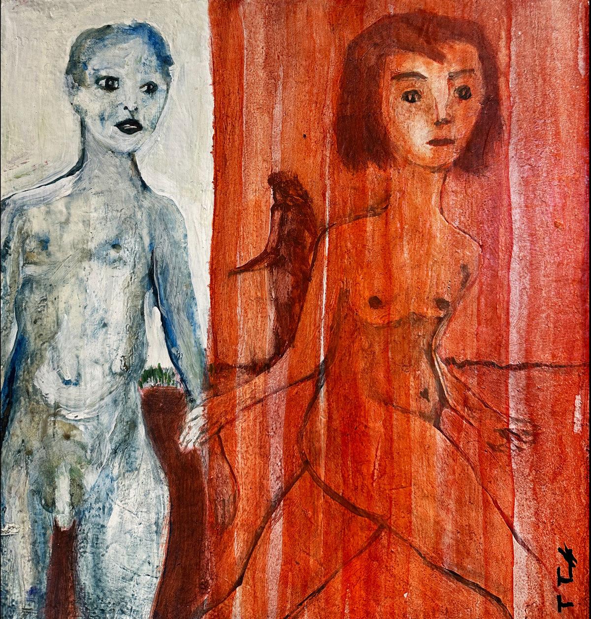 “Woman with Calf,” oil & enamel on panel, 12 x 9 inches, $2,000.00