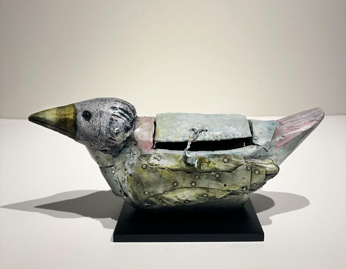 “Metal Bird,” oil & enamel on steel, 14.5 x 8 x 6 inches, $2,500.00