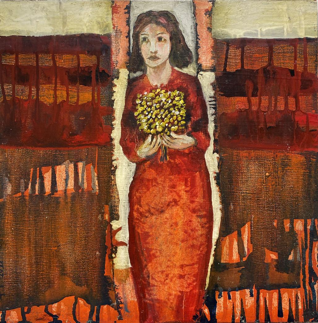 The Flower Vendors, oil & enamel on wood panel, 24 x 24 in, $3,500.00