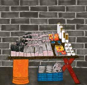 En un lunes cualquiera del año 2022, Bárbara, en compañía de dos de sus hijos, carga el carro de la familia con el mobiliario y los productos de su puesto de velas frente a la entrada del Parque Zonal Villa Mayor. Llega a las 7:00 a. m. y, antes de esa hora, los vigilantes sacan unos asadores hechos con lámina, varilla y malla de hierro, que instalan en el andén, fuera del parque, junto a la reja que lo encierra y la puerta por donde ingresan vecinos y vecinas que van a pasear a sus perros o a las clases para aprender a montar bicicleta que ofrece el Instituto Distrital de Recreación y Deporte, y los tran-