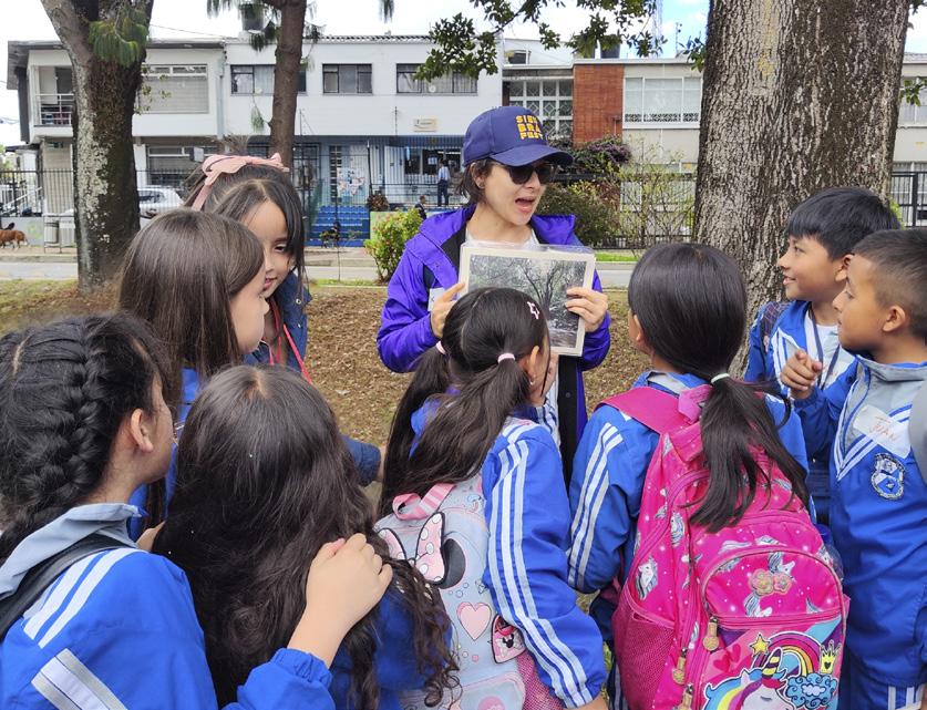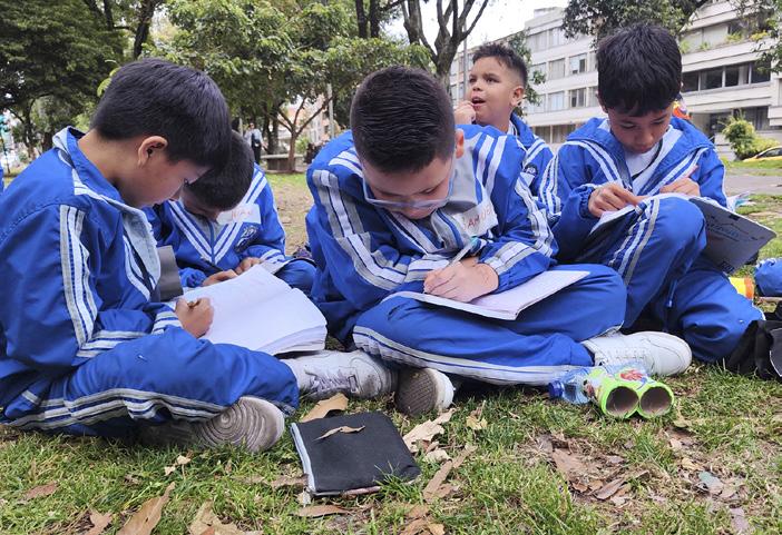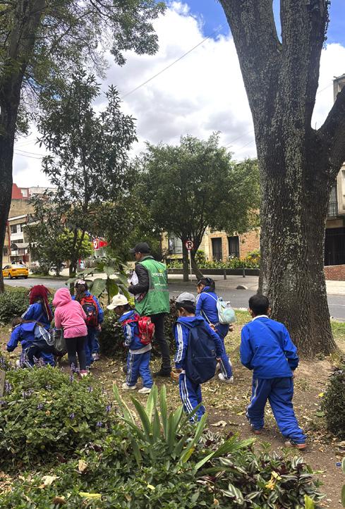 naturaleza, movilidad y vida comunitaria. Las niñas y los niños realizaron pequeñas misiones de observación —como identificar especies de árboles, notar diferencias en las texturas del suelo y reconocer los distintos usos del corredor ambiental—, cuyos hallazgos propiciaron conversaciones espontáneas sobre el valor de cuidar los espacios compartidos.
