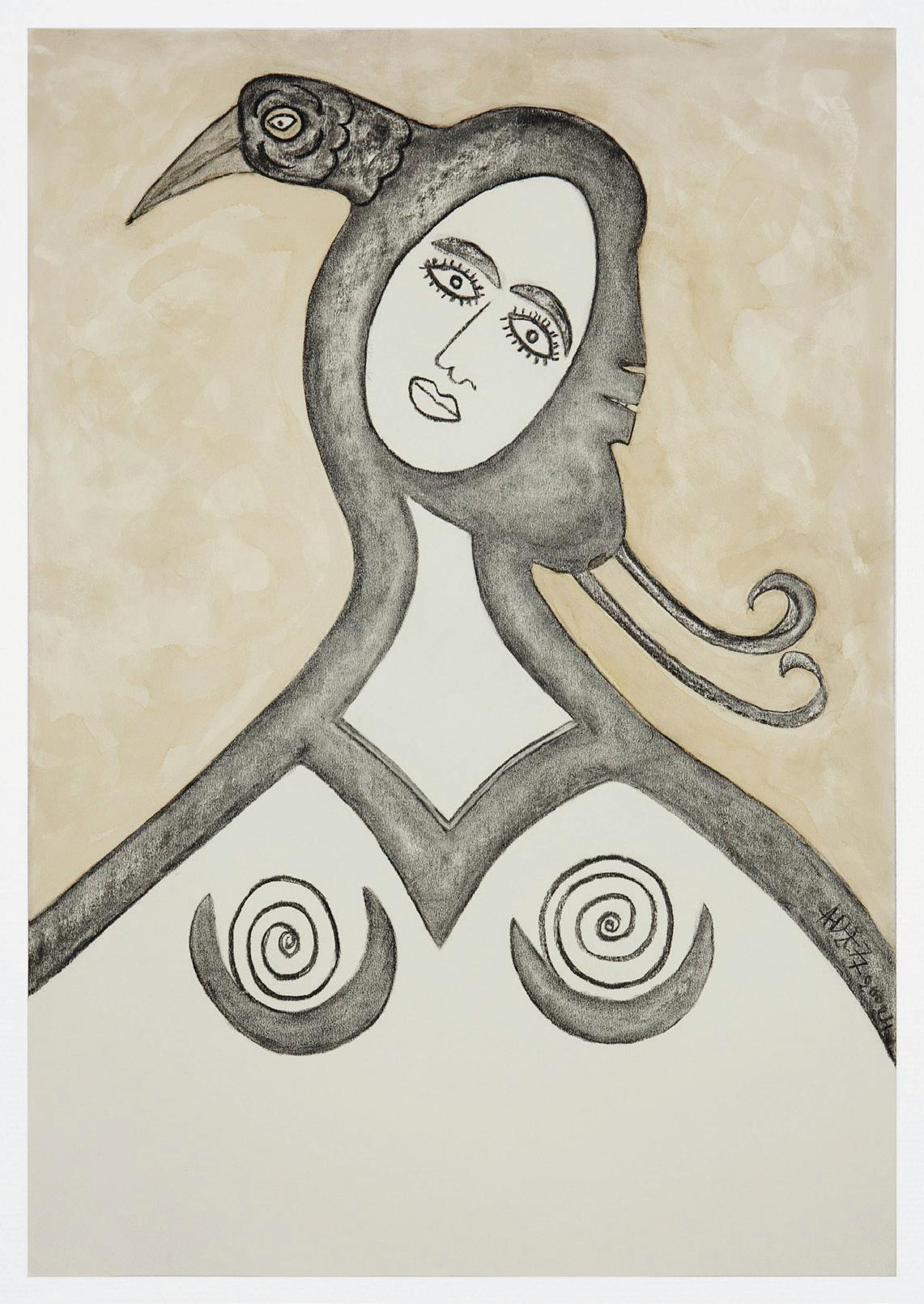 Alioune Diouf, Untitled, 2024, graphite and natural pigment on paper, 39.37 x 27.55 in. Courtesy of Selebe Yoon, Dakar, Senegal.