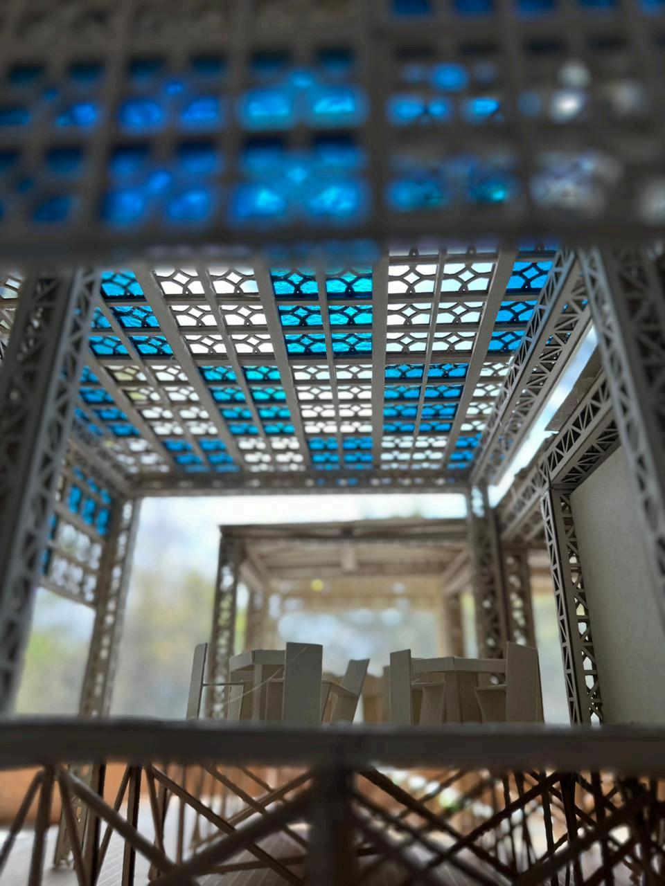 El uso de madera balsa y papel batería permitió materializar un modelo ligero pero expresivo, donde cada pliegue, celosía y soporte se traduce en un espacio coherente con la intención original. Las pruebas realizadas mostraron un diseño funcional, eficiente y bien estructurado, capaz de integrar instalaciones básicas sin comprometer la estética ni la ligereza del conjunto.