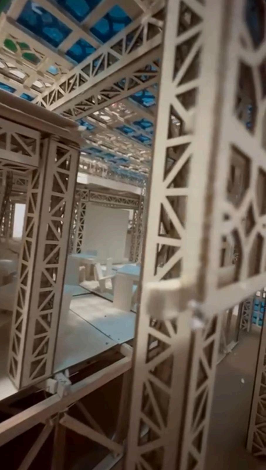 Tobringtheconcepttolife,webuiltaphysicalmodelthatallowedusto visualize the design before actual construction. We worked with balsa woodandbatterypaper,lightweightandeasy-to-handlematerialsthat helped us study proportions, joints, and structural behavior. Although these materials are fragile when subjected to extreme forces, this allowed us to better understand their limitations and how similar elementswouldrespondonarealscale.
