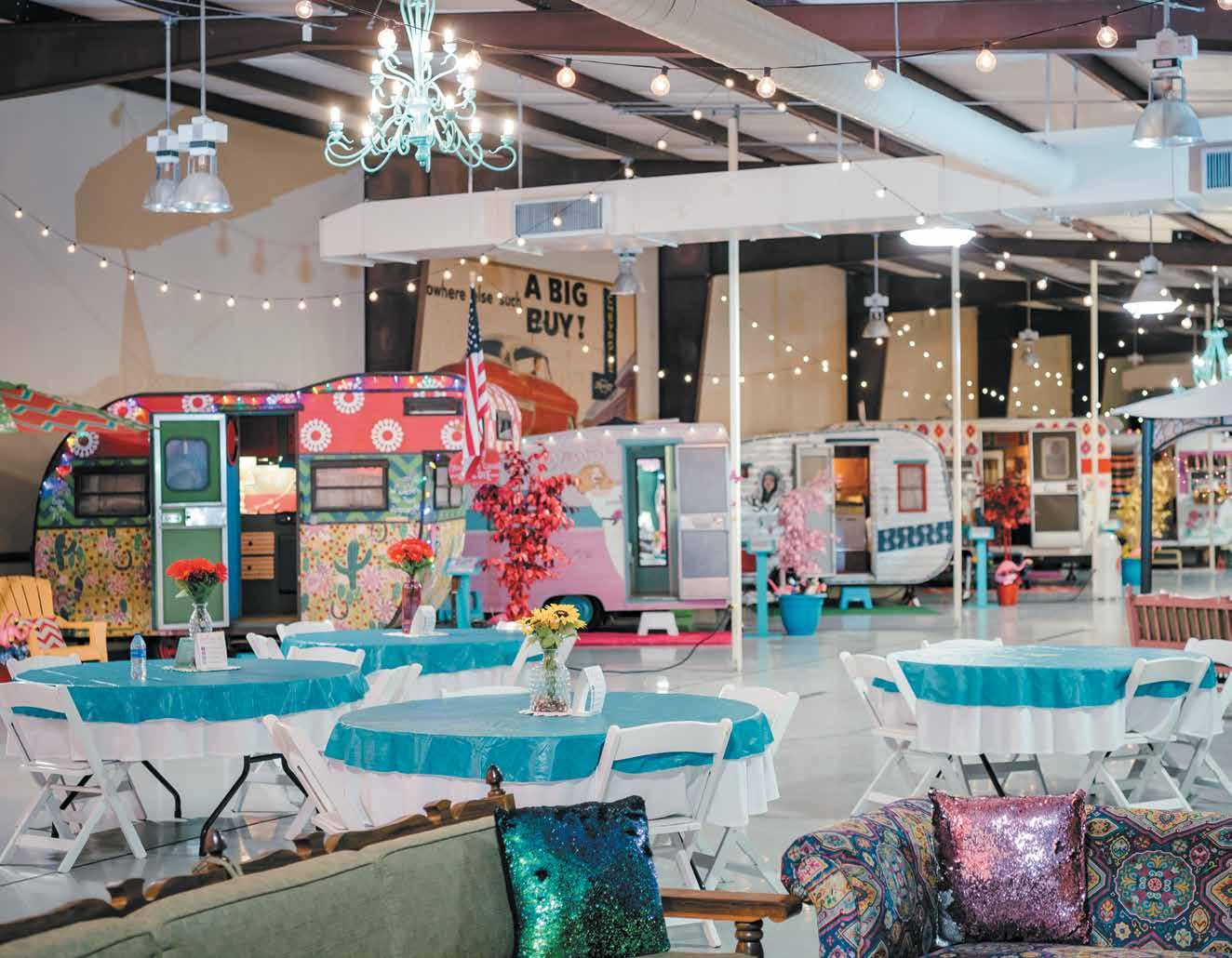 Below: The Round Top Ballroom, where you can hunt for antiques or rent it for events.