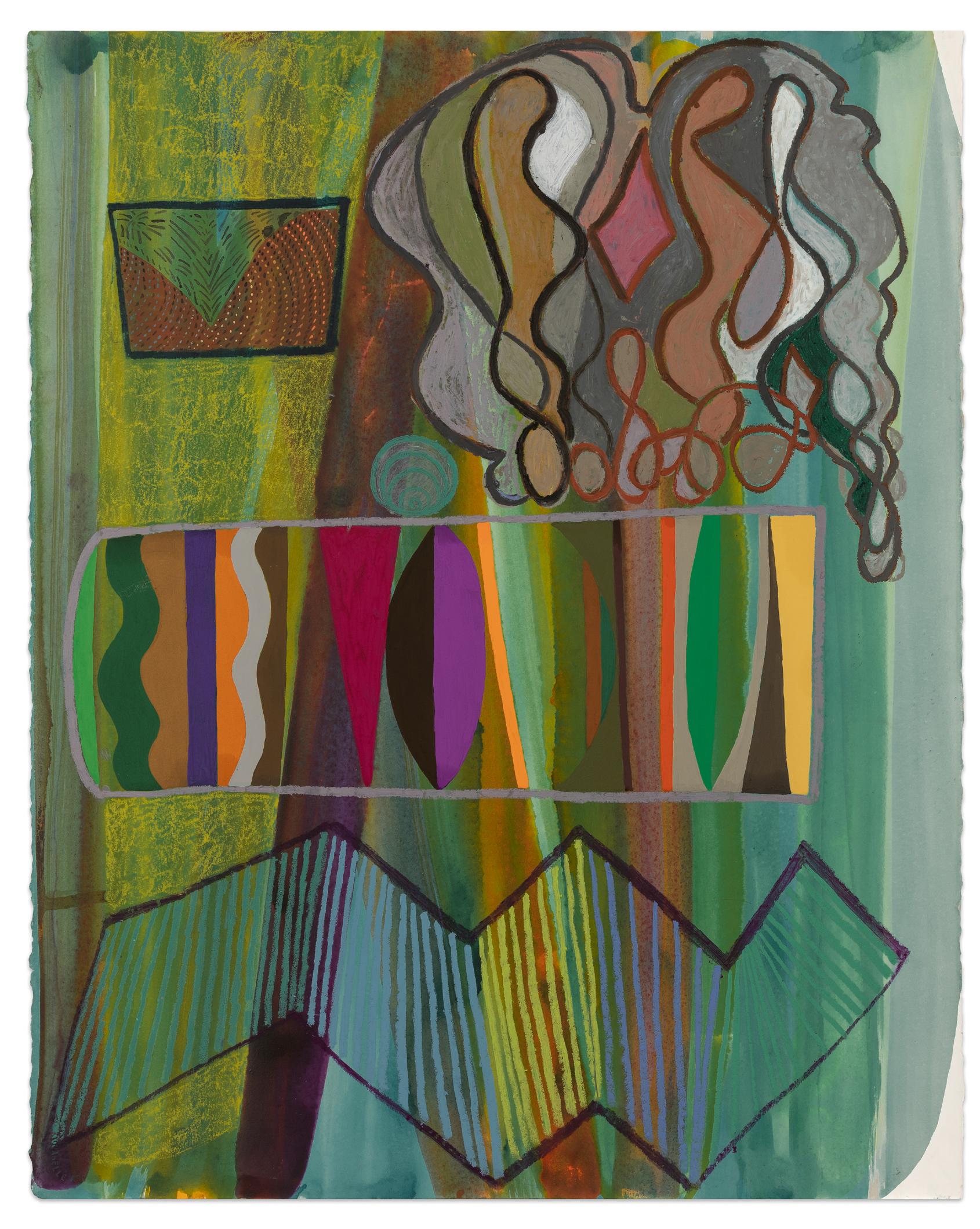 oil pastel, colored ink, gouache, graphite on paper, 32 1/2 x 26 inches, unframed