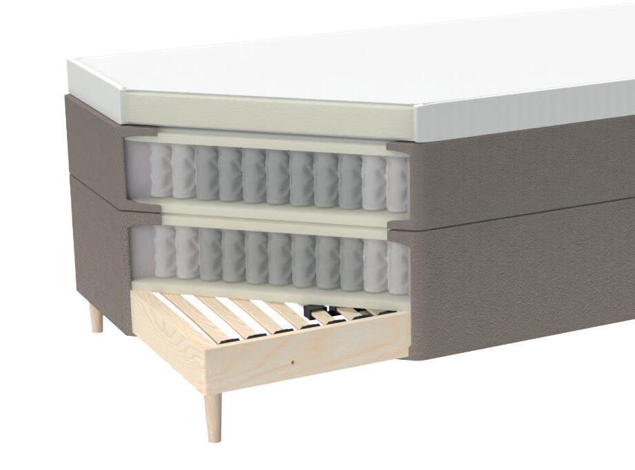 Siden hele 75% av oss foretrekker å sove på siden, har alle våre senger en myk skuldersone som lar skulderen synke naturlig ned og avlastes for å unngå trykkpunkter.