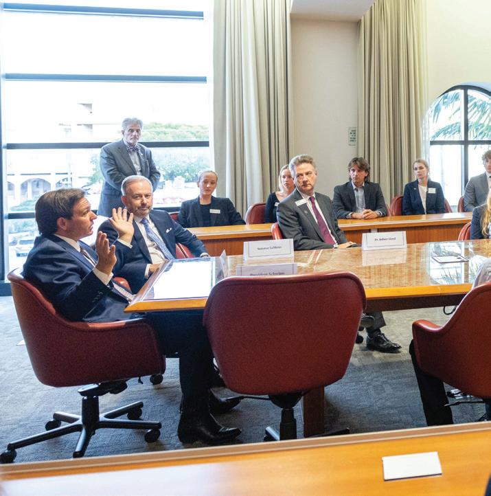 PBA’s LeMieux Center for Public Policy offers numerous opportunities to engage with current affairs through this publication and our events. Our distinguished Speaker Series has featured notable individuals including Doris Kearns Goodwin, presidential historian and Pulitzer Prize-winning author, retired General Frank McKenzie, former commander of the U.S. Central Command, and Florida Governor Ron DeSantis. This year features former U.S. Secretary of Defense Robert M. Gates, national security expert Elizabeth Neumann, and PBA alumna Michelle Rigby Assad, a former CIA operative and security consultant.