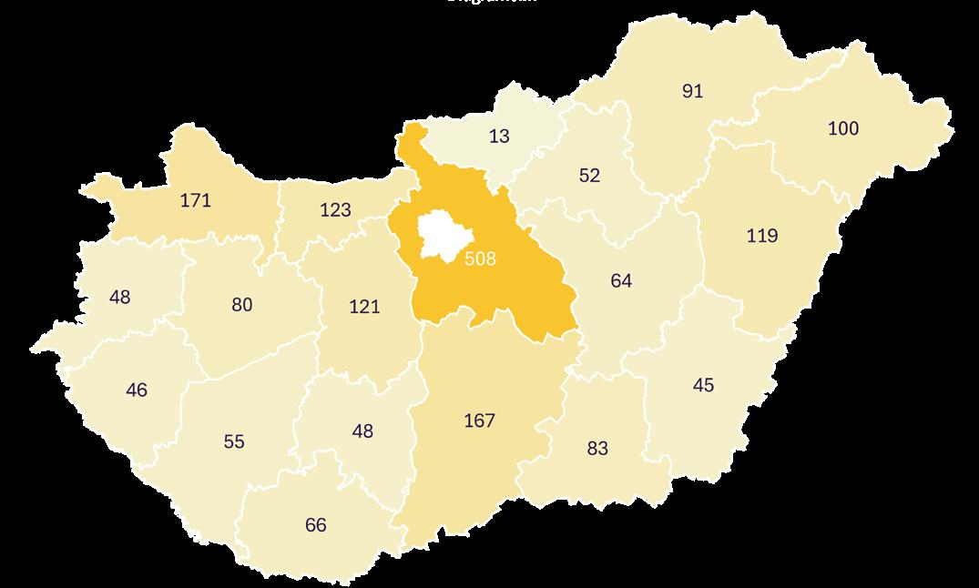 14. ábra: A TOP2000 listára felkerült vállalatok területi megoszlása (db, 2024)
