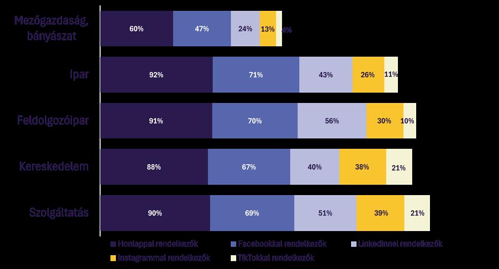 ► Az elsődleges és másodlagos közösségi média platformmal is rendelkezők aránya 27% és 31% az ipar és feldolgozóipari ágazatokban, 39% a kereskedelmi és a szolgáltatói vállalatok körében.