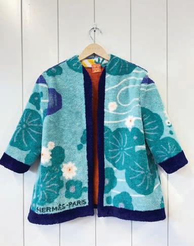 Opposite page: Ombré graphic bikini bottoms ($85), Farm Rio, farmrio.com; crinkled organic linen bomber ($1,398), Lafayette 148 New York, lafayette148ny.com.