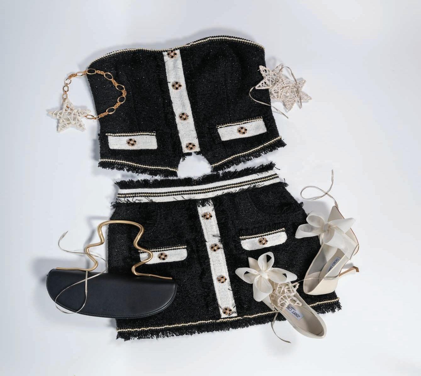 From timeless black-and-white to elegant burgundy, these ballroom-ready clothes— and the dazzling accessories to pair with them—bring your holiday season wardrobe within reach.
