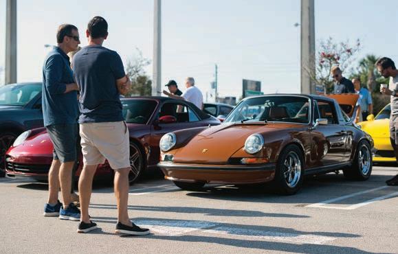 AN EARLY MORNING GATHERING OF PORSCHE AND COFFEE enthusiasts convened at Porsche West Palm Beach this past Spring. The warm rays of the gentle rising sun played across the widened fenders, colorful metallic flakes, and iconic “turbo” emblems of 911s, Caymans, Cayennes, and other Porsche models of every vintage. Each glistening example belonged to a member of the Gulfstream Region PCA—one of the newest and quickest-growing regions of the Porsche Club of America. The group’s membership has swelled to nearly 600 active Porsche owners in less than two years.
