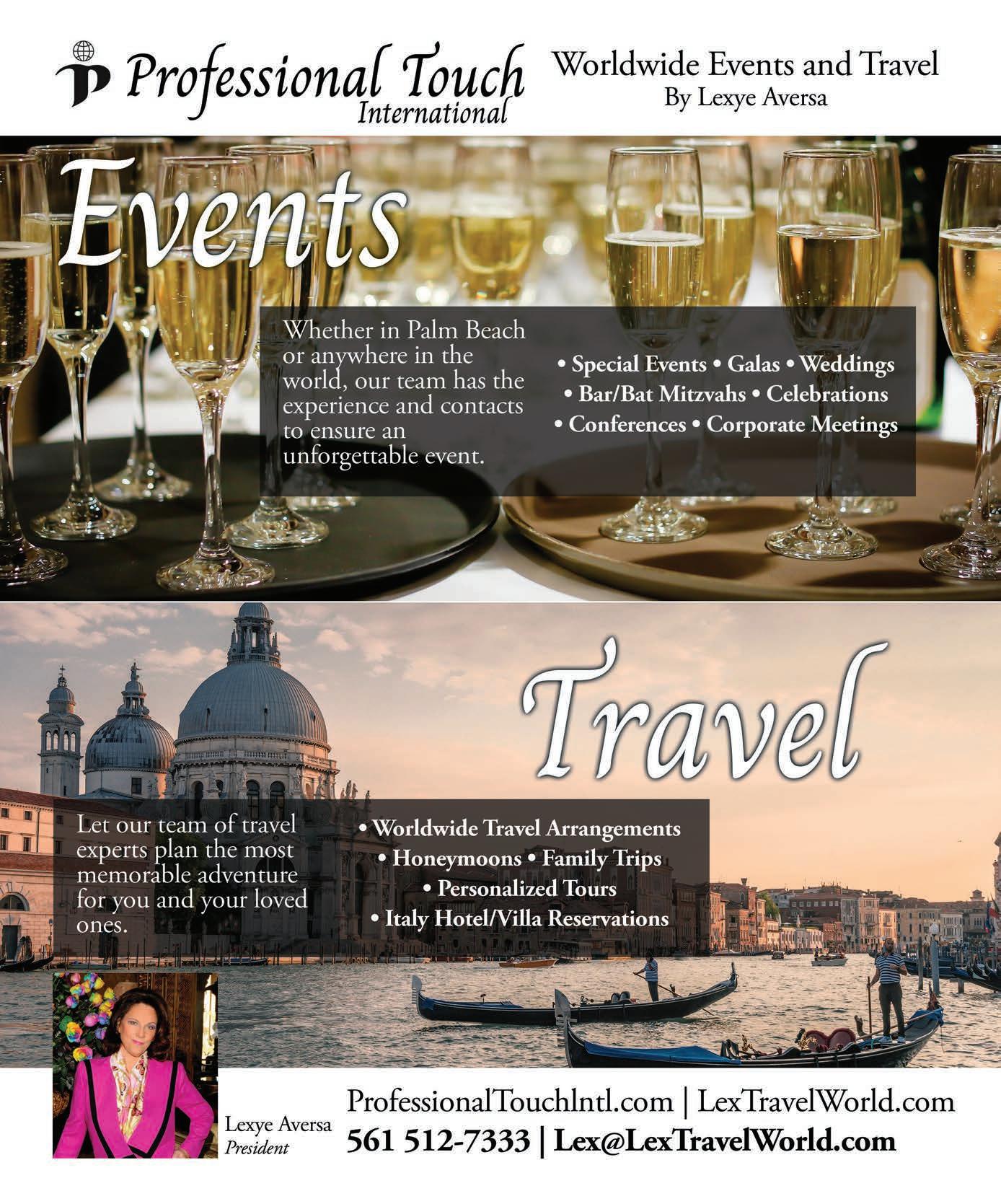 Relying upon the experience gained through their vast empire of travel, hospitality, and event planning businesses, Lexye and her husband quickly became the one-call solution for destination weddings, honeymoons, fundraisers, and corporate events in Palm Beach—and beyond. When it came to their clients, there were no geographical borders, no requests too ambitious, and no doubts that the services rendered would exceed expectations. The results were wildly successful; their company, Professional Touch International Travel, recently celebrated its 40th anniversary.