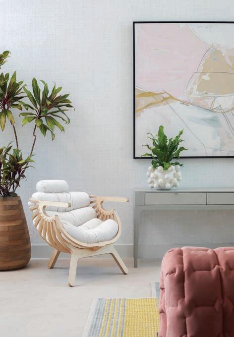 Add a pop of color to your white couch with Laura Park’s pink cabana pillow ($195). Grove Gallery & Interiors, Miami (grovegalleryinteriors.com)