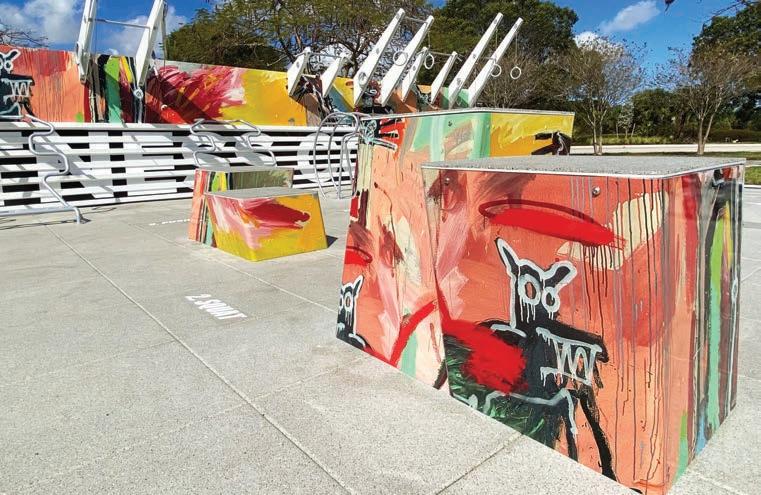 Forget snagging museum exhibit tickets to admire a display of Jean-Michel Basquiat’s art. The city of Deerfield Beach recently unveiled a new outdoor fitness court wrapped in reproductions of the late artist’s paintings, thanks to a grant from the National Fitness Campaign. Deerfield Beach is now one of 10 U.S. locations to boast an art-themed fitness park like the one located in Pastor Willie James Ford Sr. Linear Park. The court boasts QR codes that provide workout instructions, or stop by for weekly in-person classes led by local fitness ambassadors. (deerfield-beach.com)