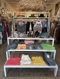 For a boutique-like feel, display special bags, shoes, hats, and accessories prominently. There are many varieties of stands on which to hang purses or hats, risers to display shoes, and a myriad of options for showing off key items like sunglasses, ties, and belts.