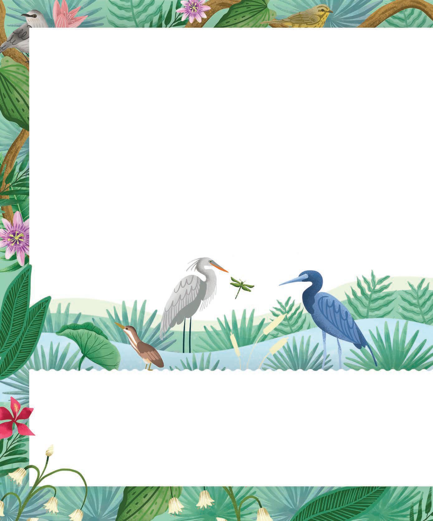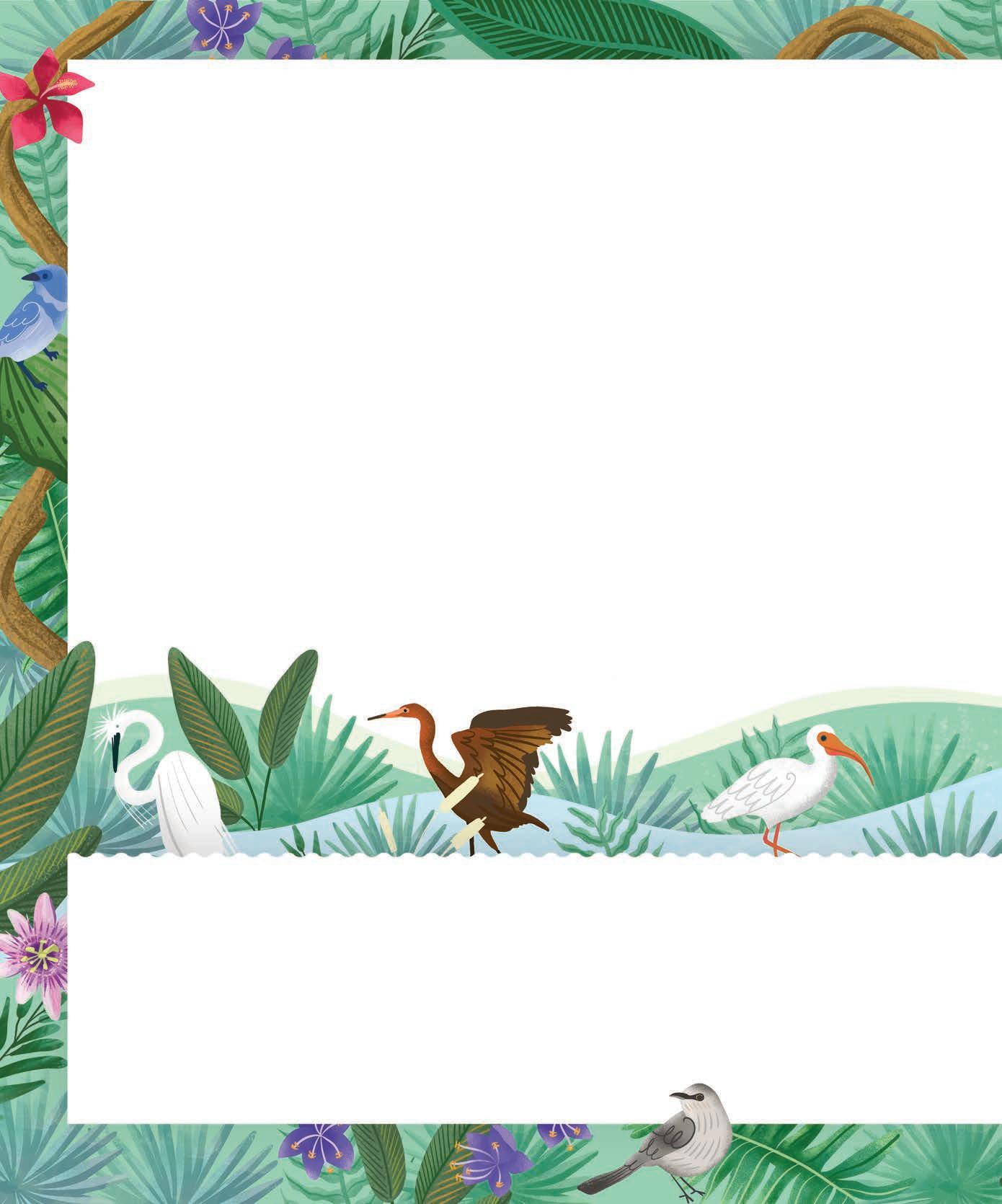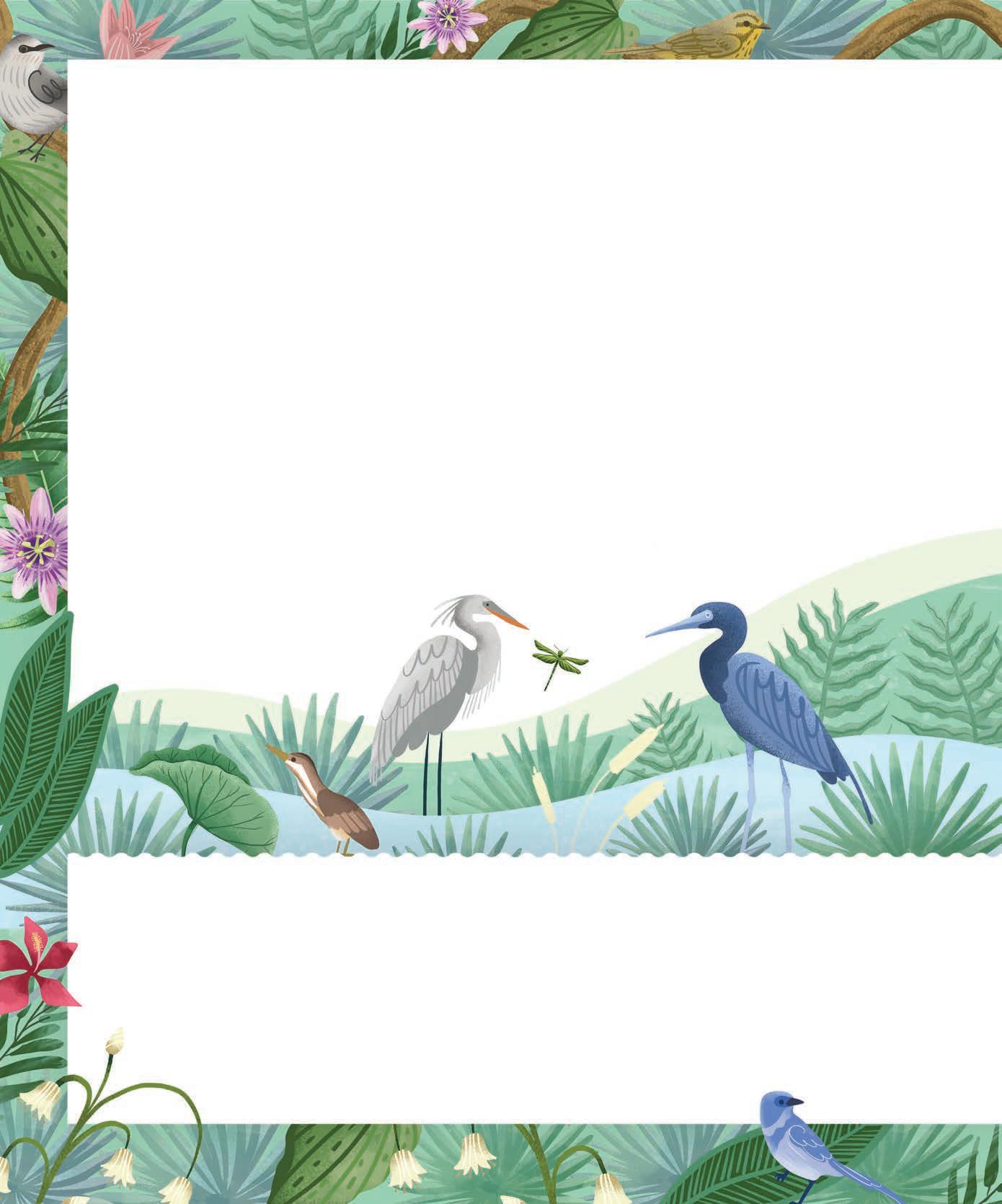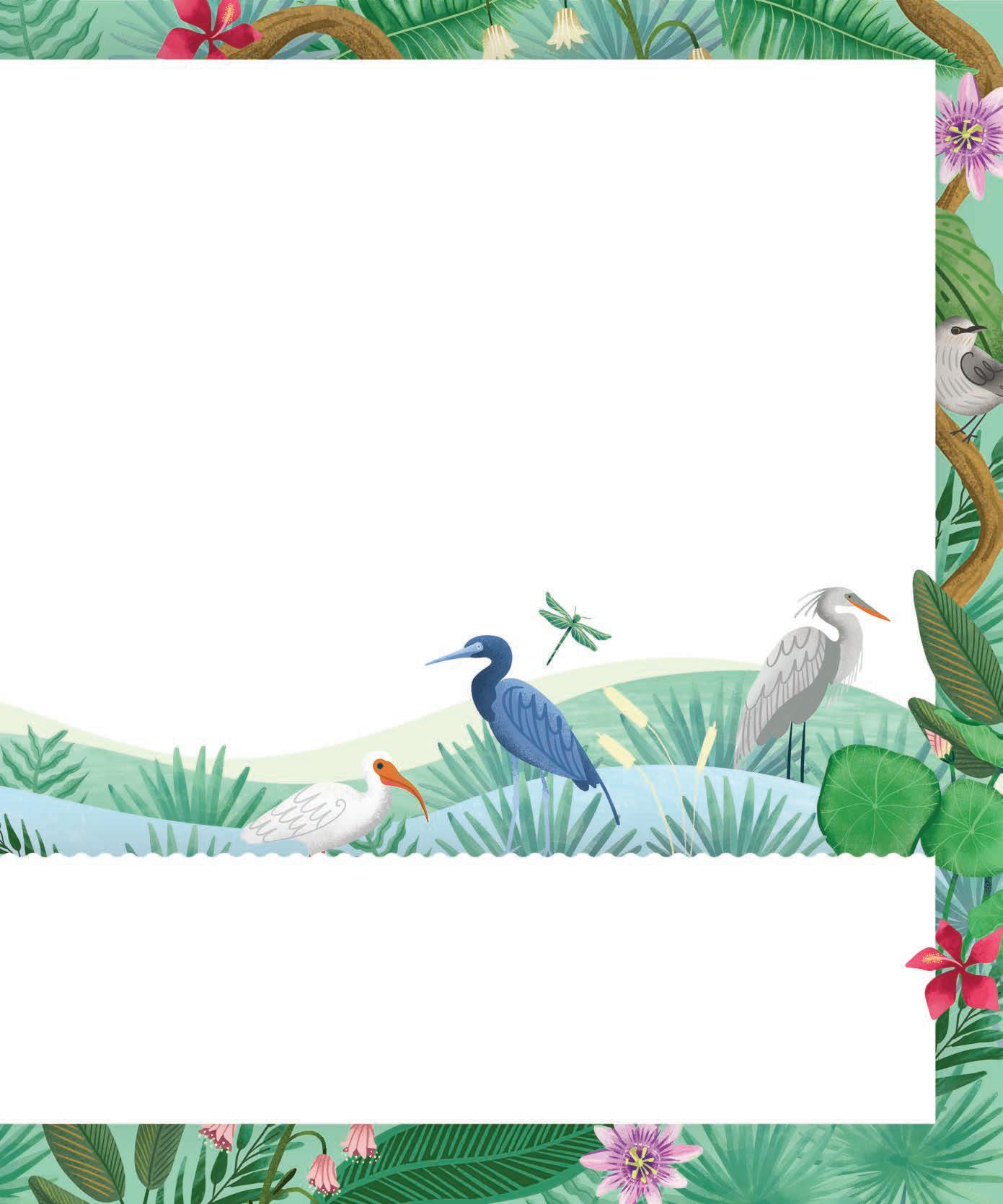 Artist Dora Knuteson says that a lifelong love of animals has inspired her dedication to environmental conservation. She has donated proceeds of sales to nonprofits such as Friends of Rookery Bay, and her creations have been licensed by companies with aligned missions, including Leeward Look. A detail of her 36” x 48” acrylic on canvas painting, Let’s Go to South Beach II, featuring a flock of