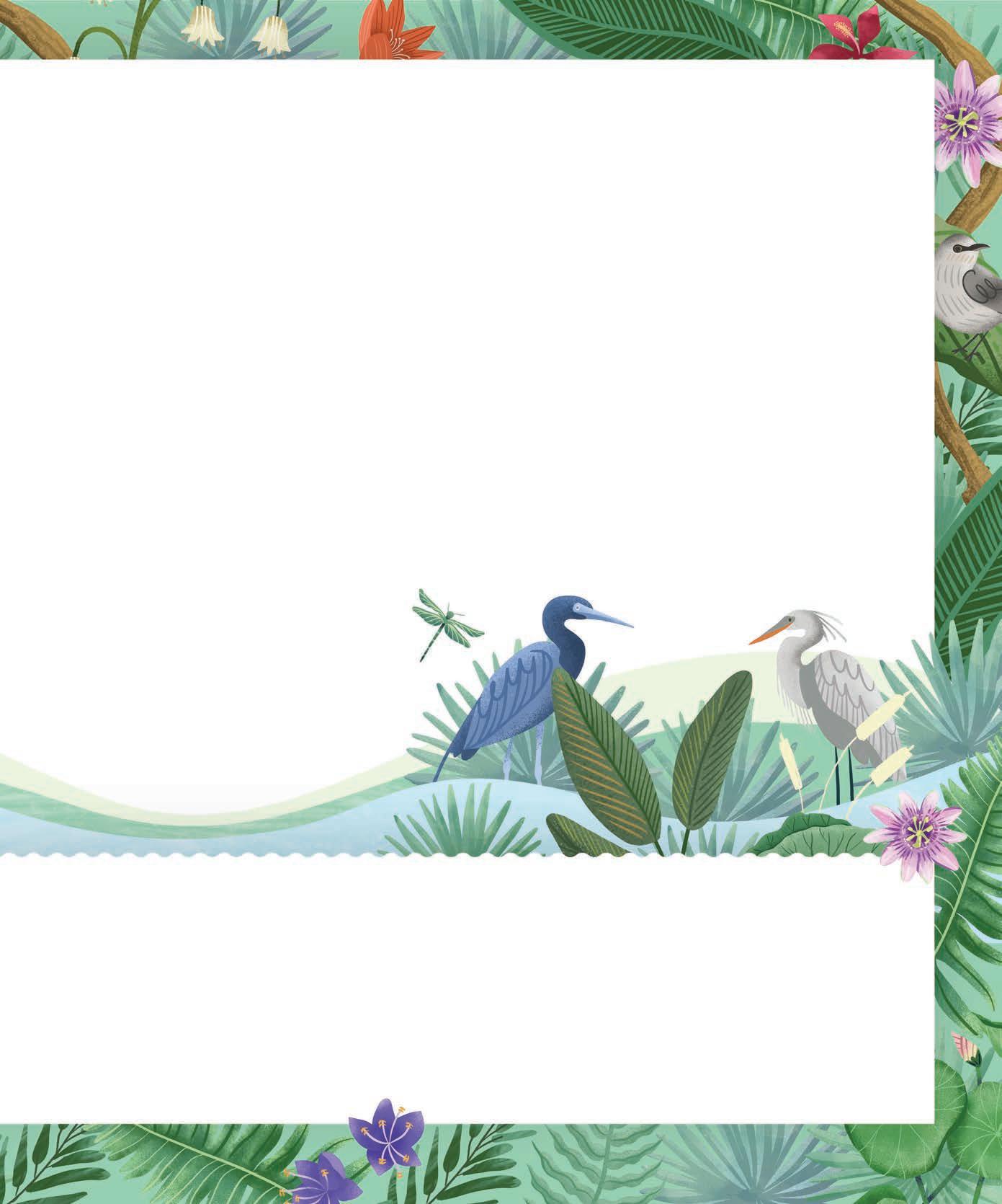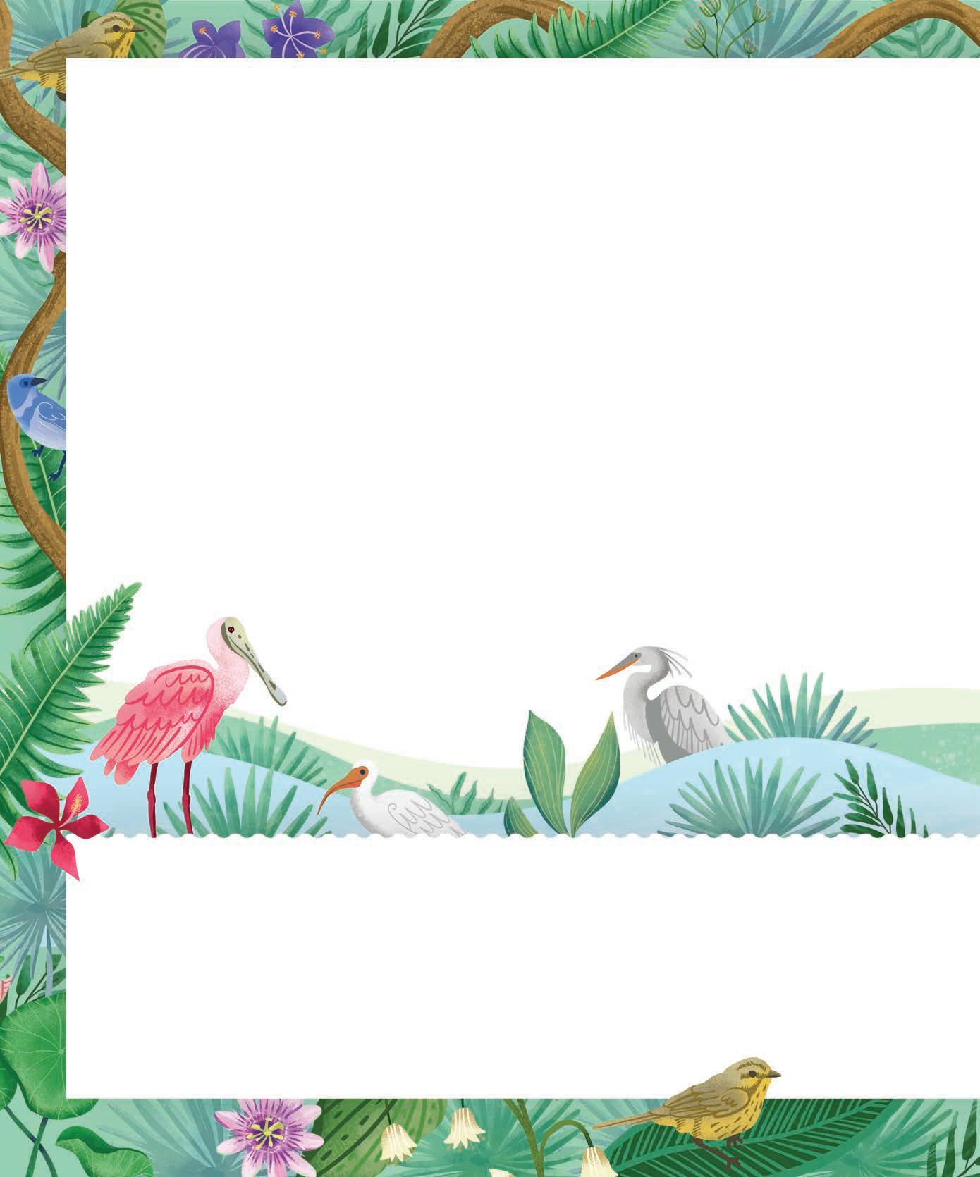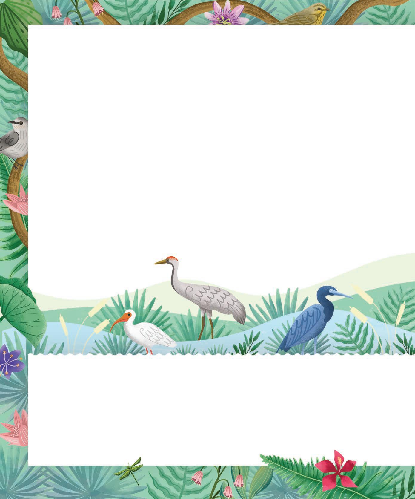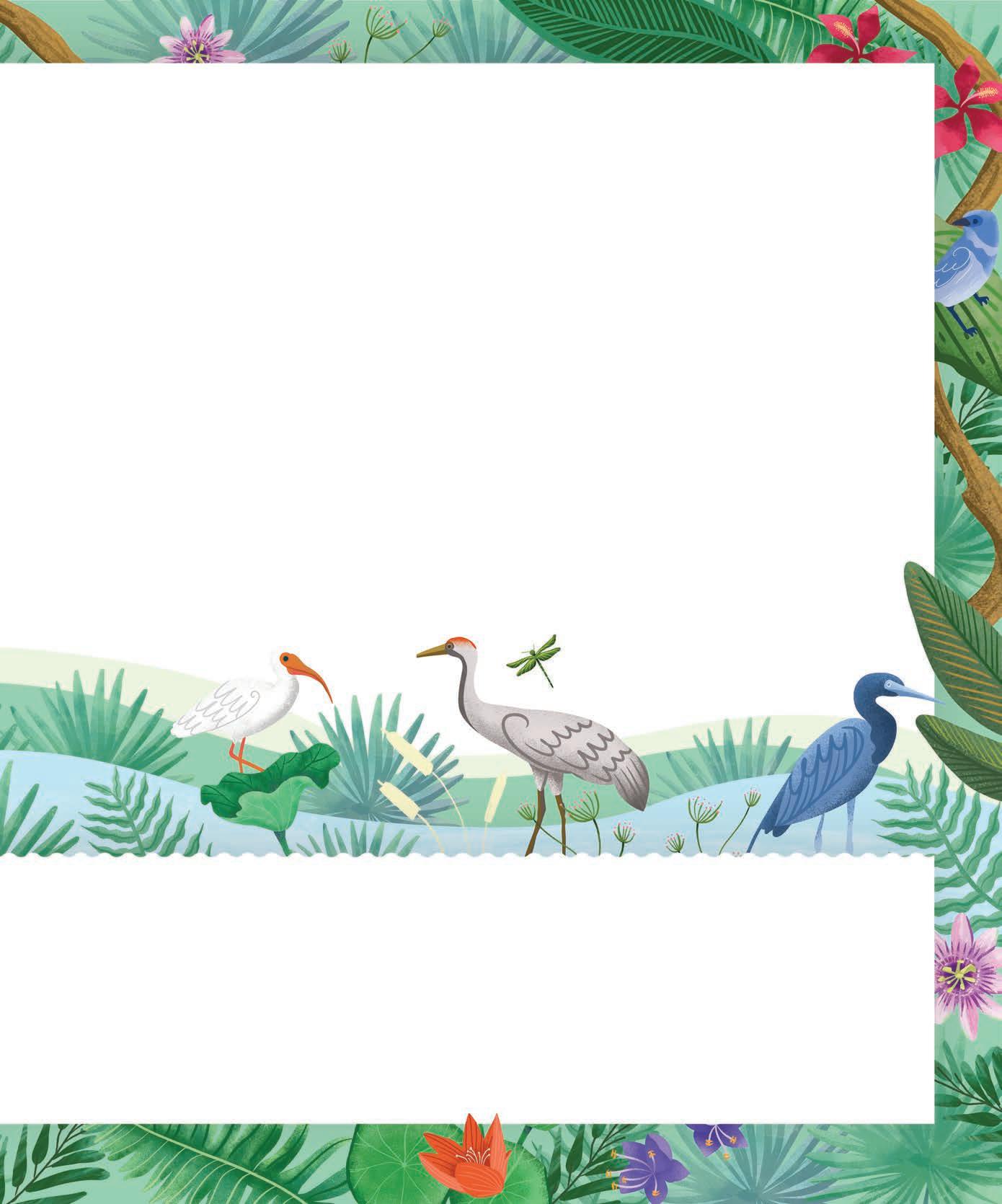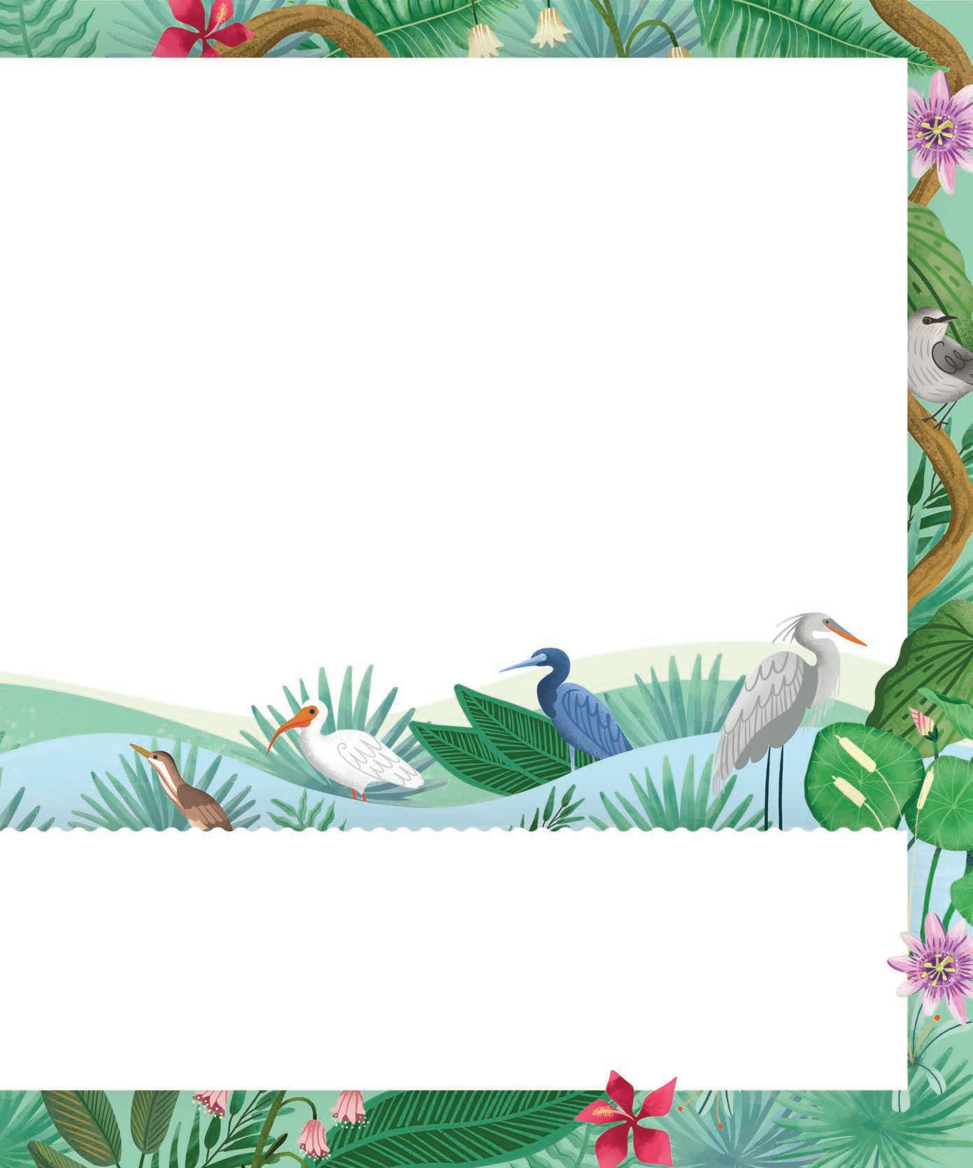 Artist Dora Knuteson says that a lifelong love of animals has inspired her dedication to environmental conservation. She has donated proceeds of sales to nonprofits such as Friends of Rookery Bay, and her creations have been licensed by companies with aligned missions, including Leeward Look. A detail of her 36” x 48” acrylic on canvas painting, Let’s Go to South Beach II, featuring a flock of