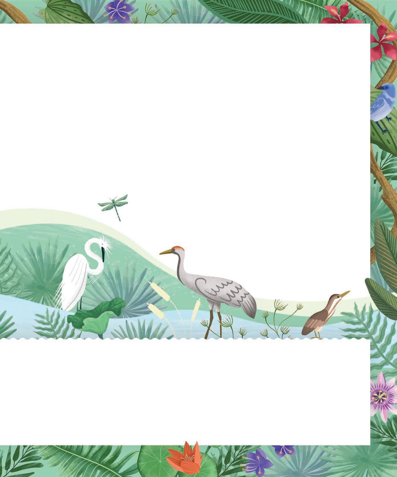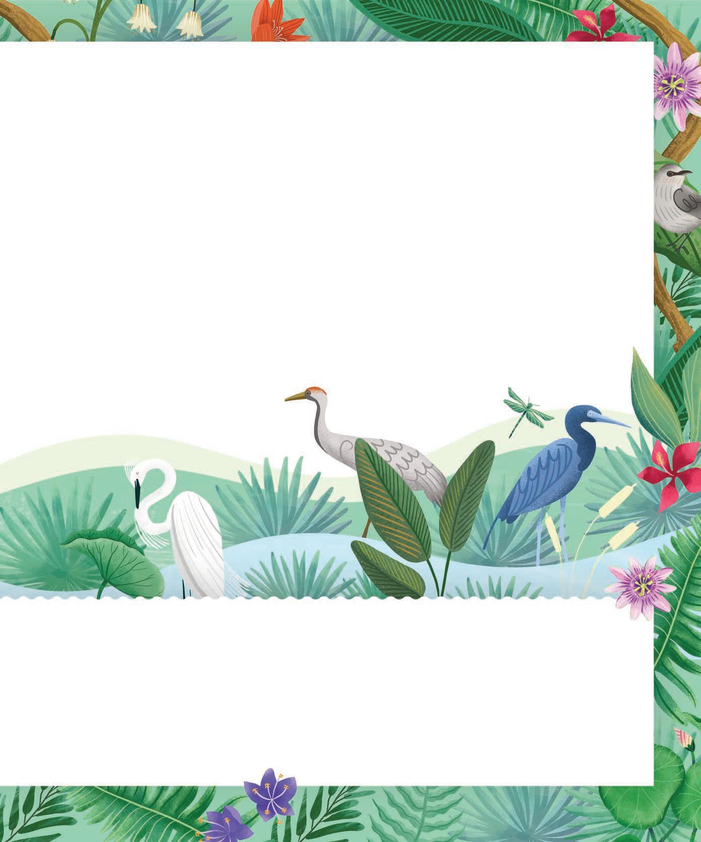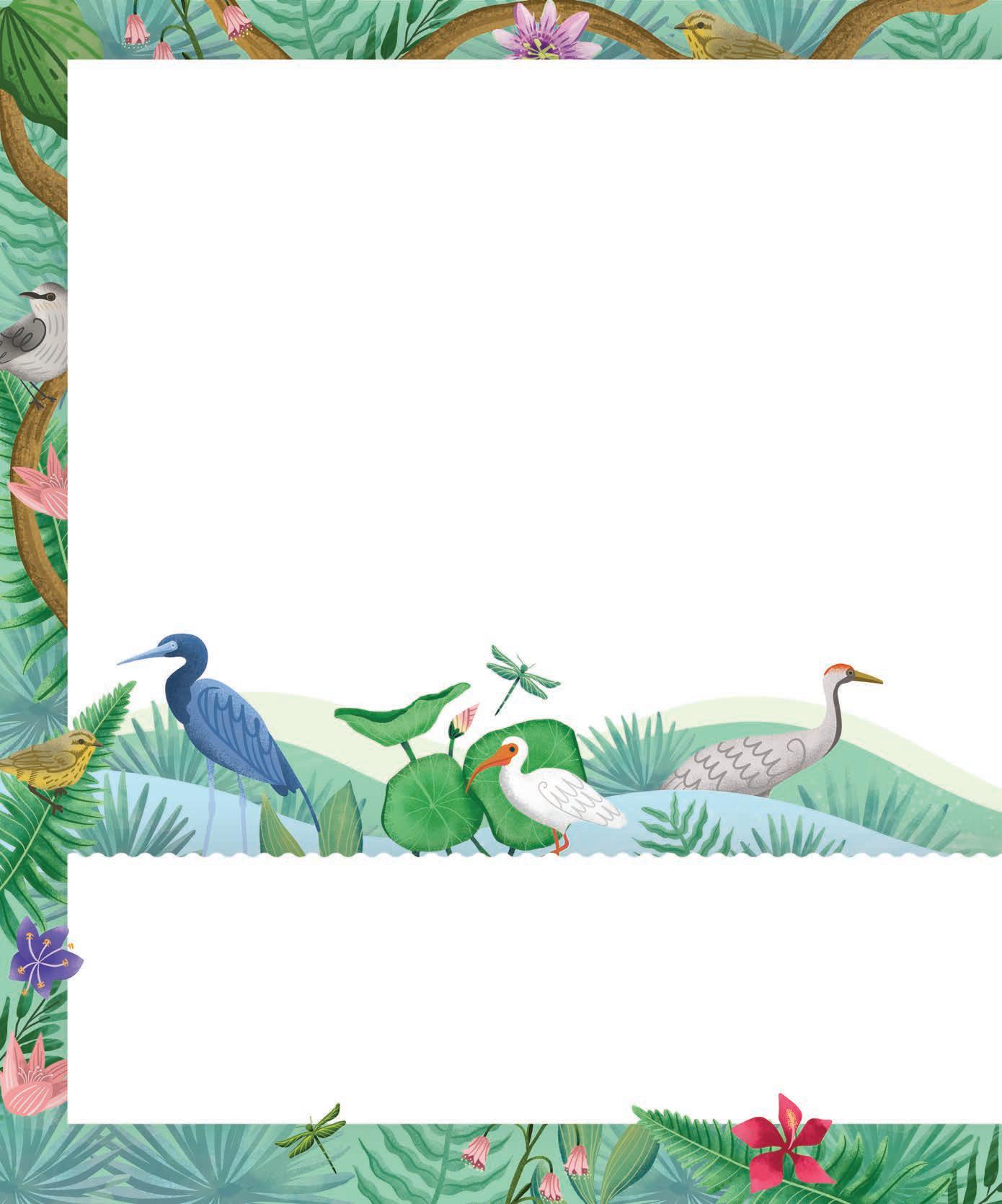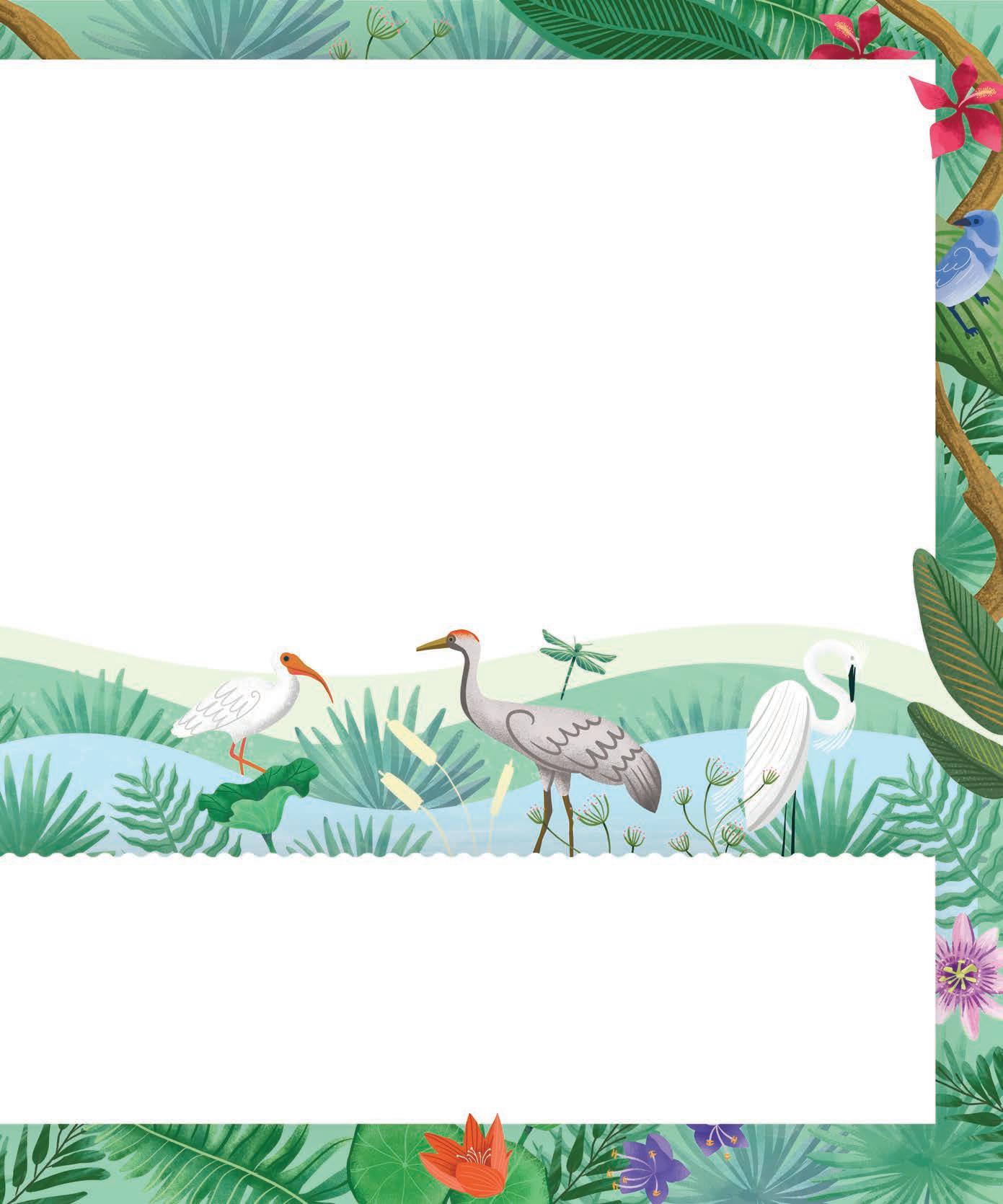 Artist Dora Knuteson says that a lifelong love of animals has inspired her dedication to environmental conservation. She has donated proceeds of sales to nonprofits such as Friends of Rookery Bay, and her creations have been licensed by companies with aligned missions, including Leeward Look. A detail of her 36” x 48” acrylic on canvas painting, Let’s Go to South Beach II, featuring a flock of