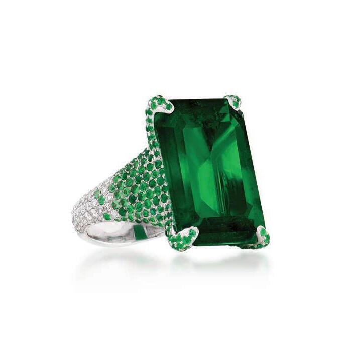 BULGARI EMERALD AND DIAMOND BYPASS RING