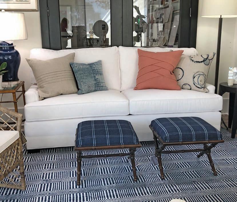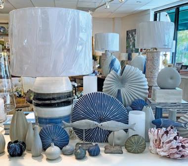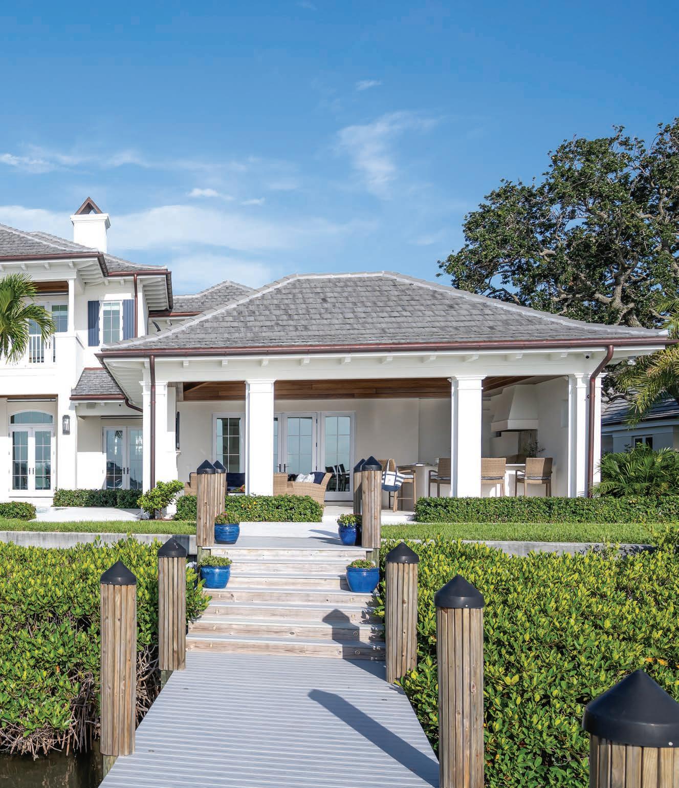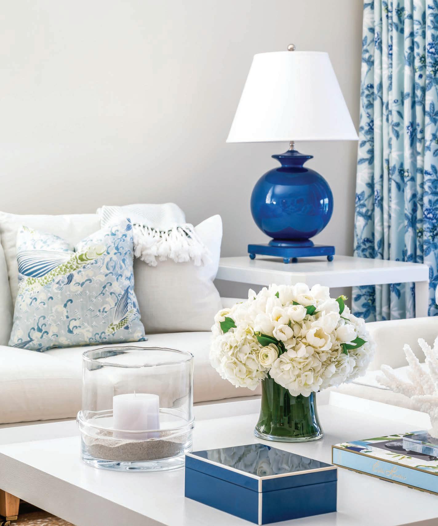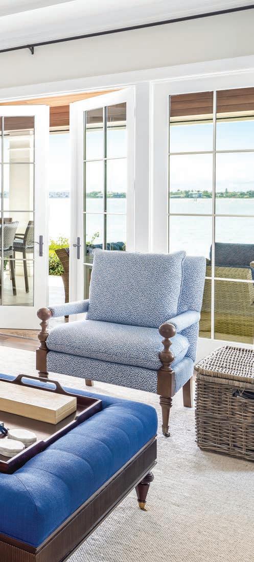 Once you’ve got your personal look down, we open the doors to the Riomar Bay home of Bruce and Christine Pitcher. They moved into their newly built home “between the bridges” in 2021 after falling in love with Vero Beach while vacationing here over the years. The Pitchers brought in designer Jill Shevlin to help define their home style, which embraces symmetry and shades of blue.