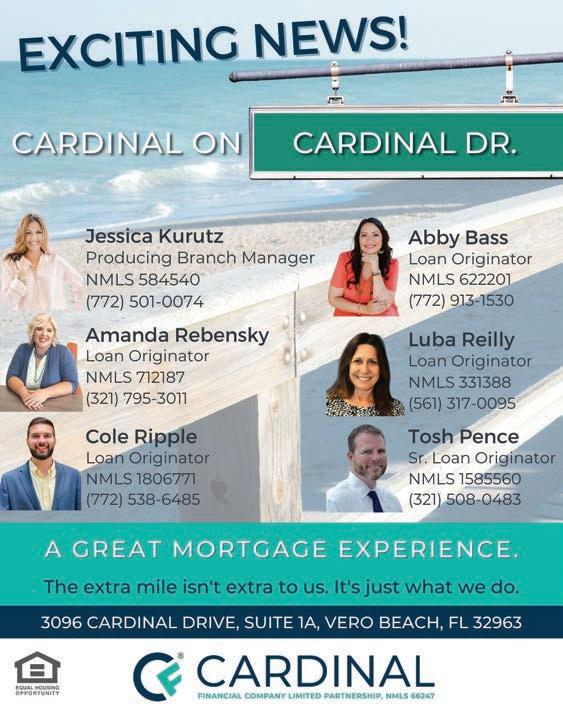 We search uncharted waters to help you achieve your real estate dream. CHARLOTTE TERRY h PATTY VALDES h MARIA CALDARONE 2911 Ocean Drive, Vero Beach, Florida 32963 Across from Humiston Park 772.234.8500 h www.charlotteterry.com Charlotte Terry Group of Alex MacWilliam Real Estate, Inc. Two of Vero Beach’s most trusted names in real estate Call the Charlotte Terry Group for all of your real estate needs.