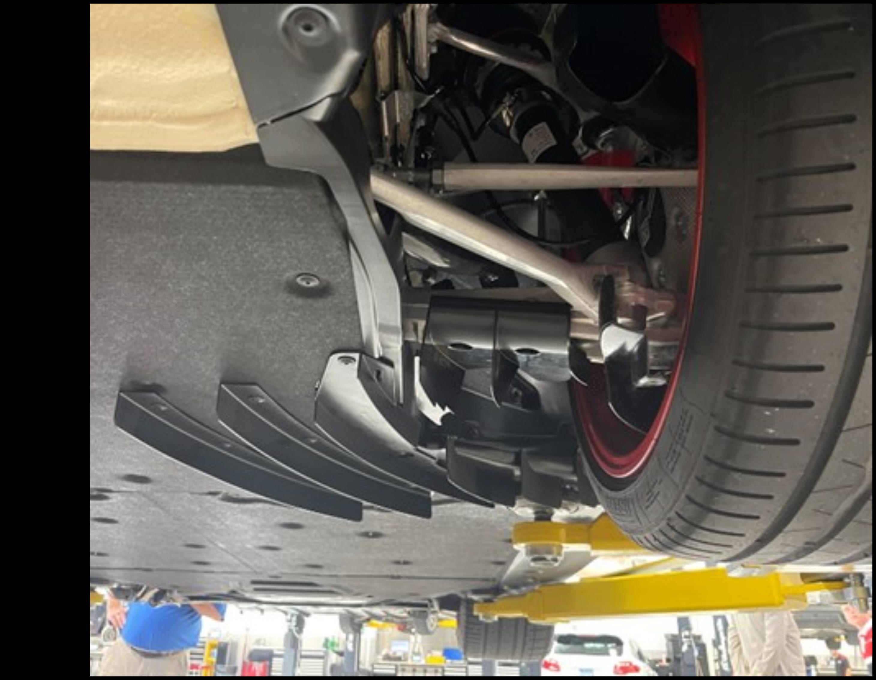 It is a more complex design, allowing better control of caster, camber and the placement of the shock. The shock now moves independently of the tire given better control, but it also takes up a lot more room due to the attachment points of the control arms. This makes the frunk area narrower on the 992 GT3RS, but who needs that in a race car anyway. The increase in downforce in the 992GT3RS is beautifully crafted by fully profiled control arms, sway bars, carbon fiber end links and nearly everything the air hits traveling down the road. If you have not seen the underside of the workings on the car its impressive and worth crawling on the ground for. The aero also extends onto the belly pans of the vehicle, Porshe uses every bit of air to keep the car glued to the ground, the double wishbone allows even a lower center of gravity. Porsche claims the car creates over 900 lbs of downforce at 124mph and nearly 1900 lbs at 177mph, that is nearly double of the previous GT3RS.