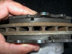 Most of the new brake rotors are now cross-drilled from the factory. The purpose for crossdrilling is to allow for the quick escape of gasses between the pads’ and the rotors’ surfaces. These gasses are generated by the application of the brakes when the great heat generated tend to sublimate some of the pad. A second advantage to cross-drilling the rotors is that there is much less brake fade when wet. One of the disadvantages is that is the cross-drilled rotors tend to crack around the perforations, so chamfering helps to relieve the cracks. Also chamfering eliminates a bit of the cheese grater effect on the pads.