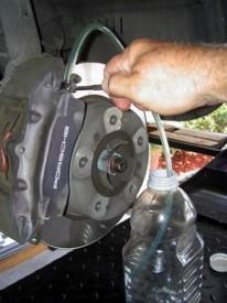 The easiest way to bleed is to use a Power Bleeder. Pour in one litre of your favorite brake fluid. Connect the cap to the Brake Reservoir and pump to 20 lbs of pressure. I place it in a bucket just in case of spills if the pressure line breaks. This way you contain the fluid which is a paint solvent.