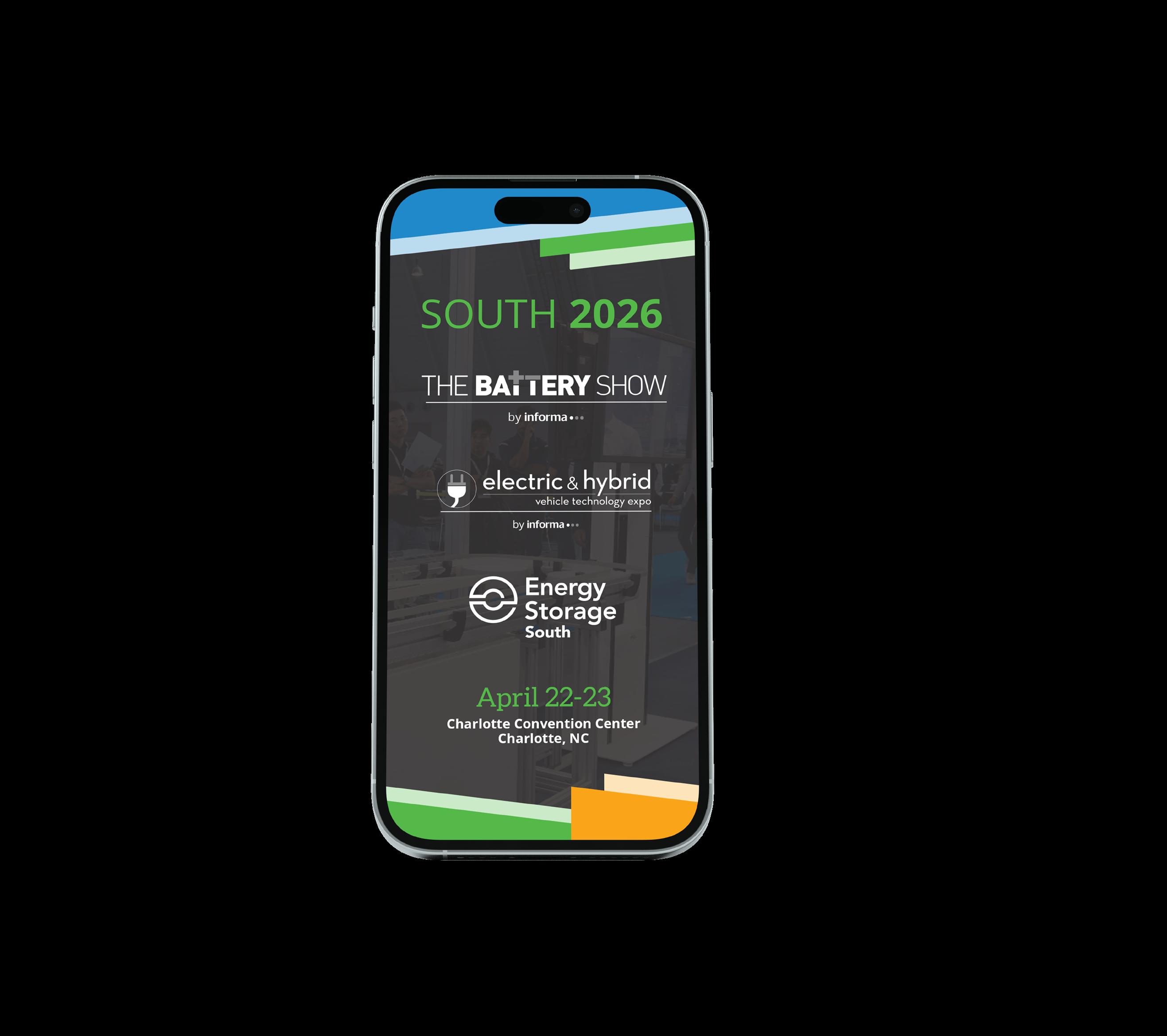 To enhance your experience, download the official Battery Show South 2026 app, where you can access the full schedule, plan your agenda, and network with fellow attendees. And, don’t miss the Welcome Reception held in Expo Hall C on Wednesday at 4:30 p.m.—a great opportunity to enjoy a live band, light bites and connect with industry peers in an energetic setting.