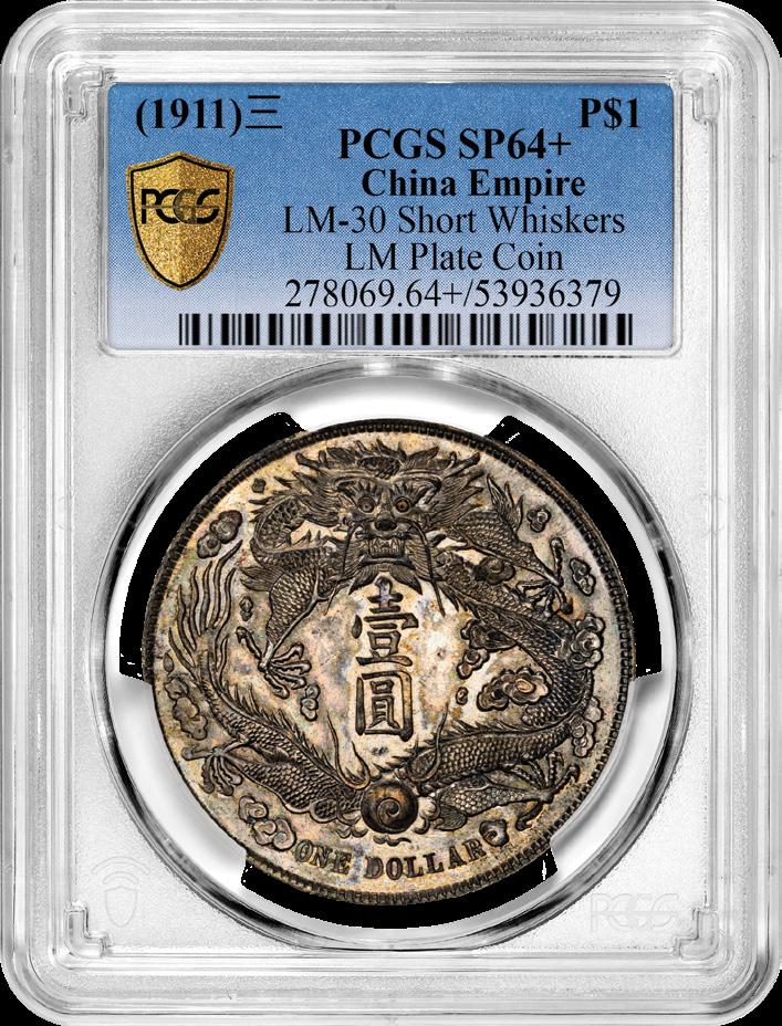 The Peh Family 1911 Short-Whiskers Dollar was the first and only such example ever certified by a third-party grading service. That service was PCGS, where the coin received the grade of SP64+.