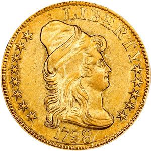 • #4 – 1798 Draped Bust Half Eagle, PCGS AU55; $3,000,000, Heritage Auctions