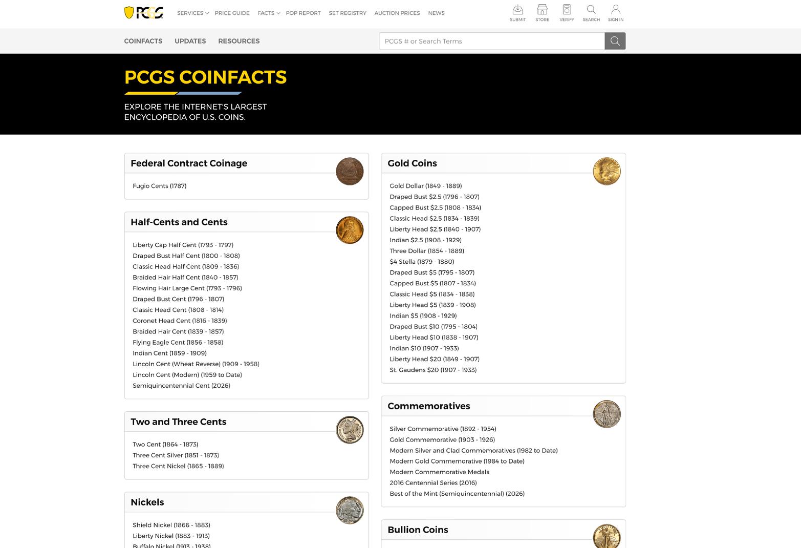 CoinFacts, a popular online numismatic encyclopedia, debuts online. PCGS begins making major overhauls to CoinFacts in 2004.