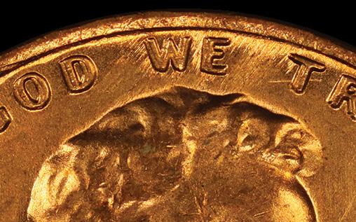 14. The light reflection or “cartwheel” shine on a mint-state surface.