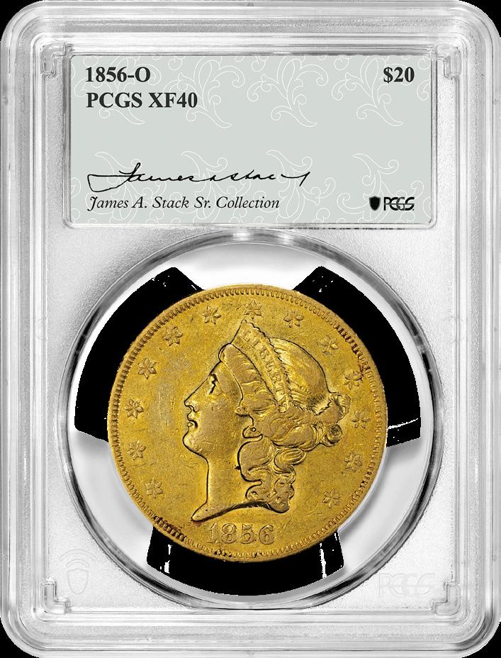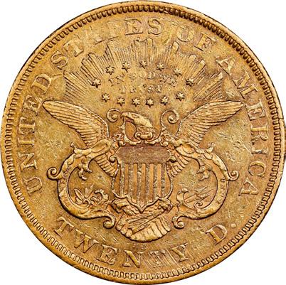 • TIED #26 – 1856-O Liberty Head Double Eagle, Winter 1, PCGS AU58; $690,000, Heritage Auctions