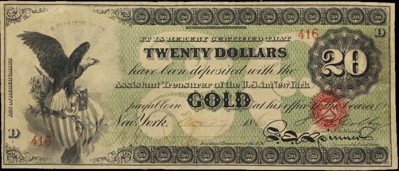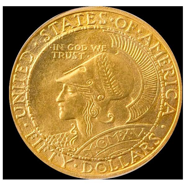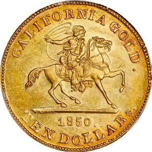 • TIED #26 – 1852 $50 Assay Office 900 Thous. K-14, PCGS MS64; $690,000, Heritage Auctions