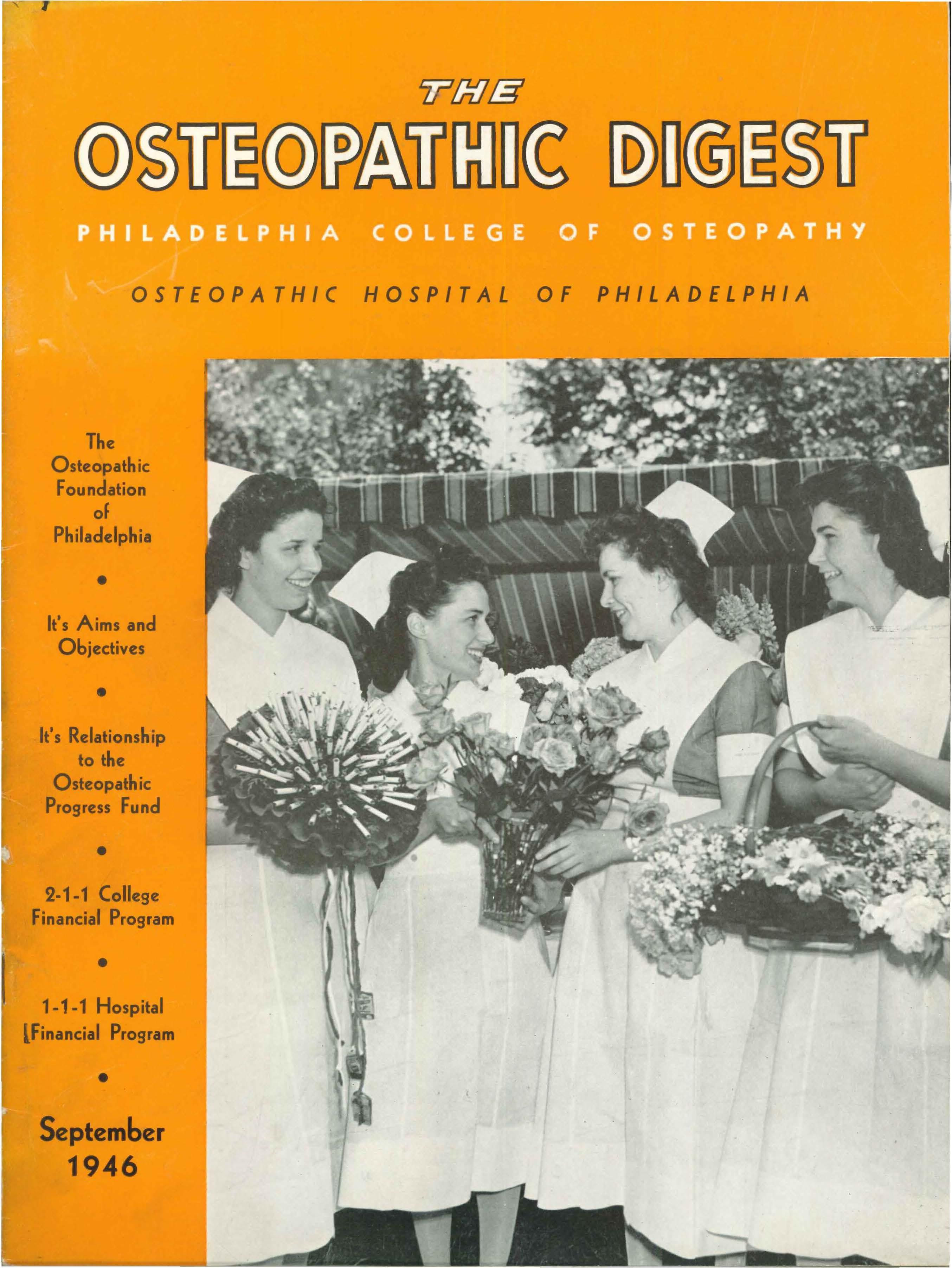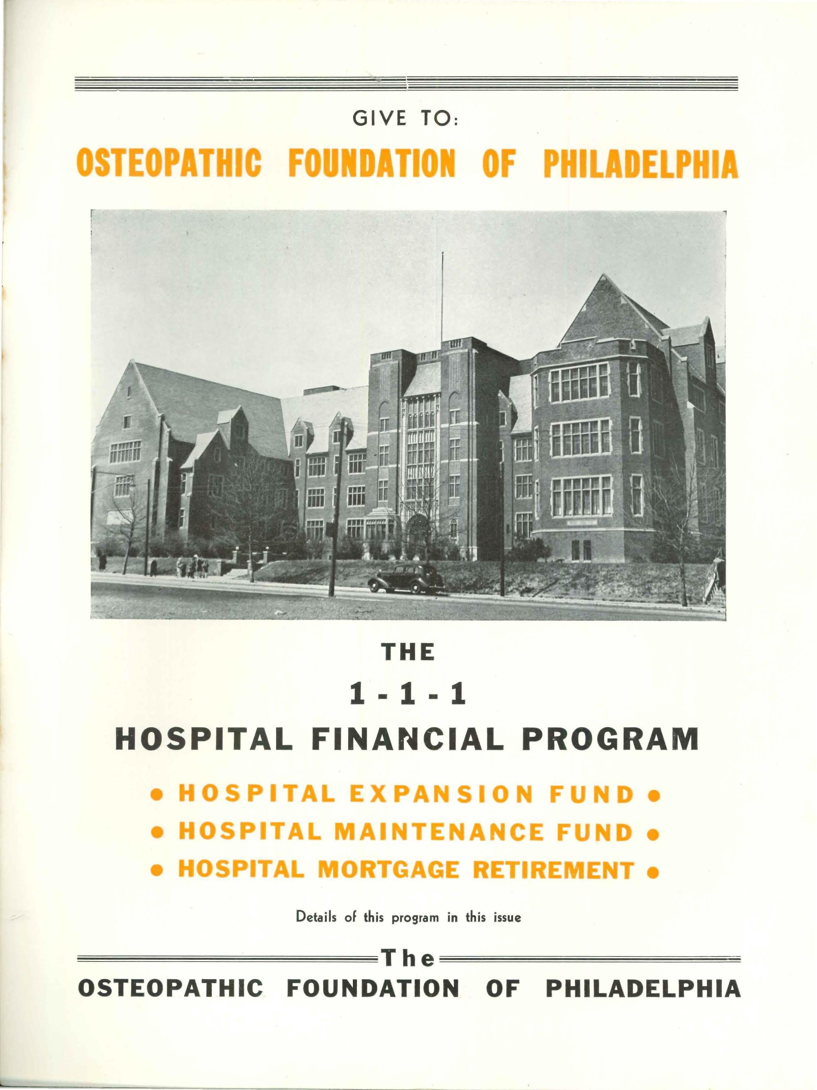 l OSTEOPATHIC HOSPITAL OF PHILADELPHIA The Osteopathic Foundation oF Philadelphia • lt•s Aims and Objectives • It's Relationship to the Osteopathic Progress Fund • 2-1-1 College financial Program • 1-1-1 Hospital lfinancial Program • September 1946